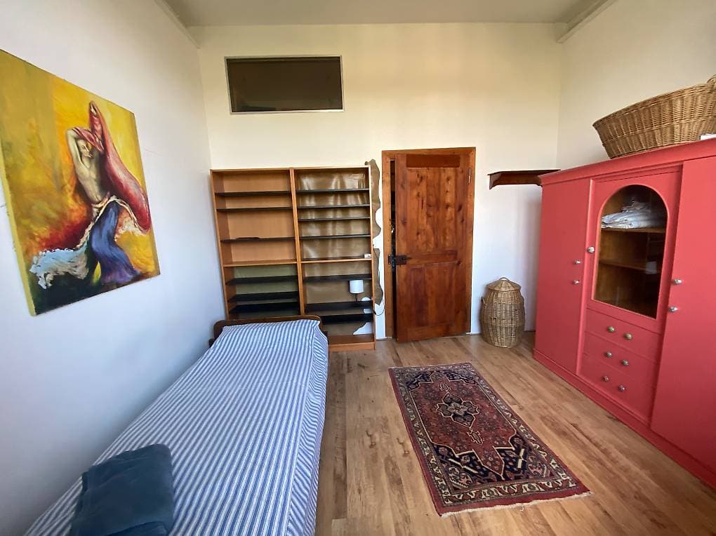 - Gemütliches Wohn-Schlafzimmer: komplett eingerichtet mit Einzelbett, Kleiderschrank, praktischen Regalen und einem Teppich fuer Wohnlichkeit