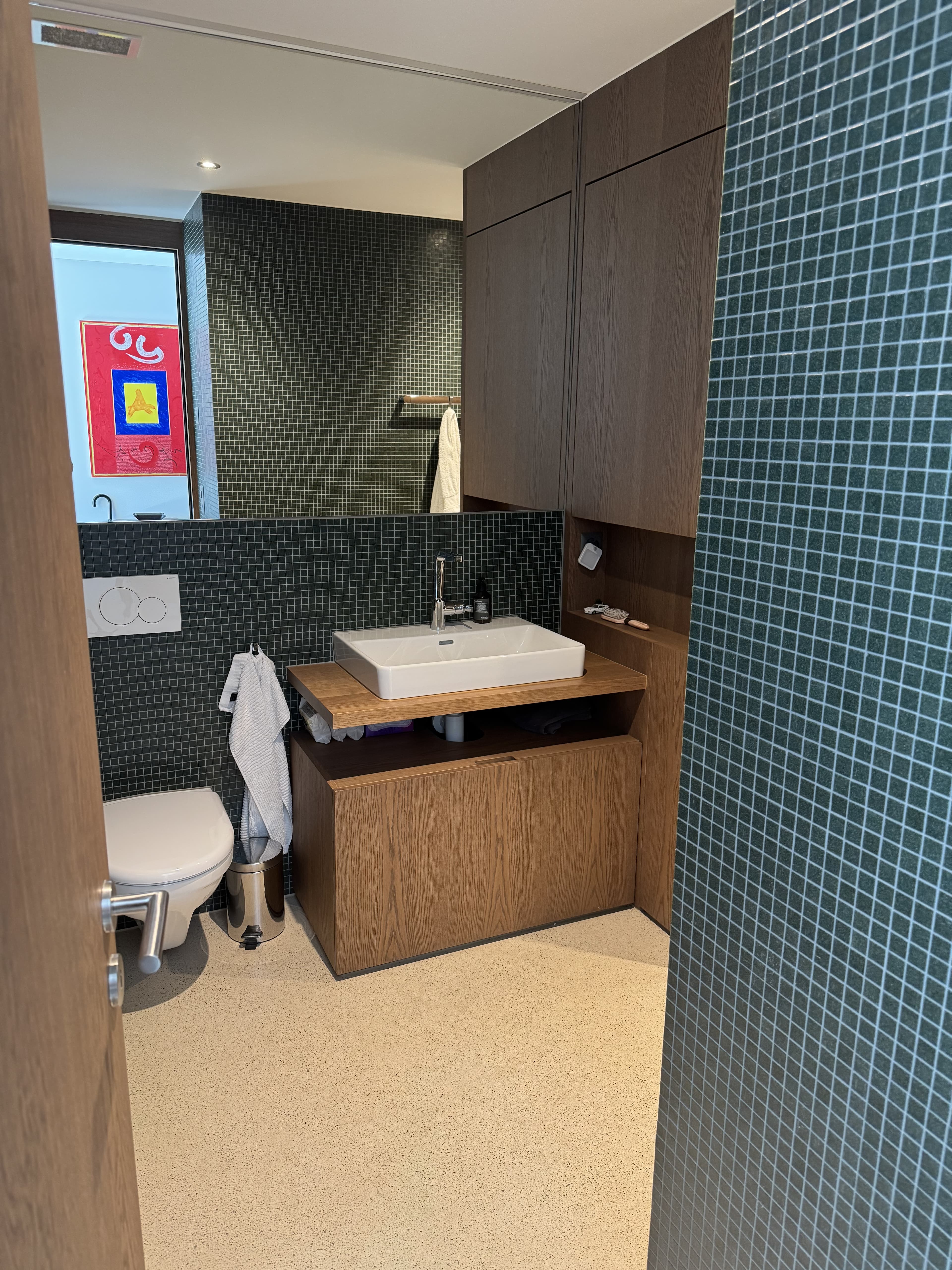 The location is extremely convenient: shops are nearby, green spaces are just a short walk away (with a flowing stream and woods just outside the apartment), and thanks to excellent public transport connections, you can reach Stadelhofen station in just a few minutes.