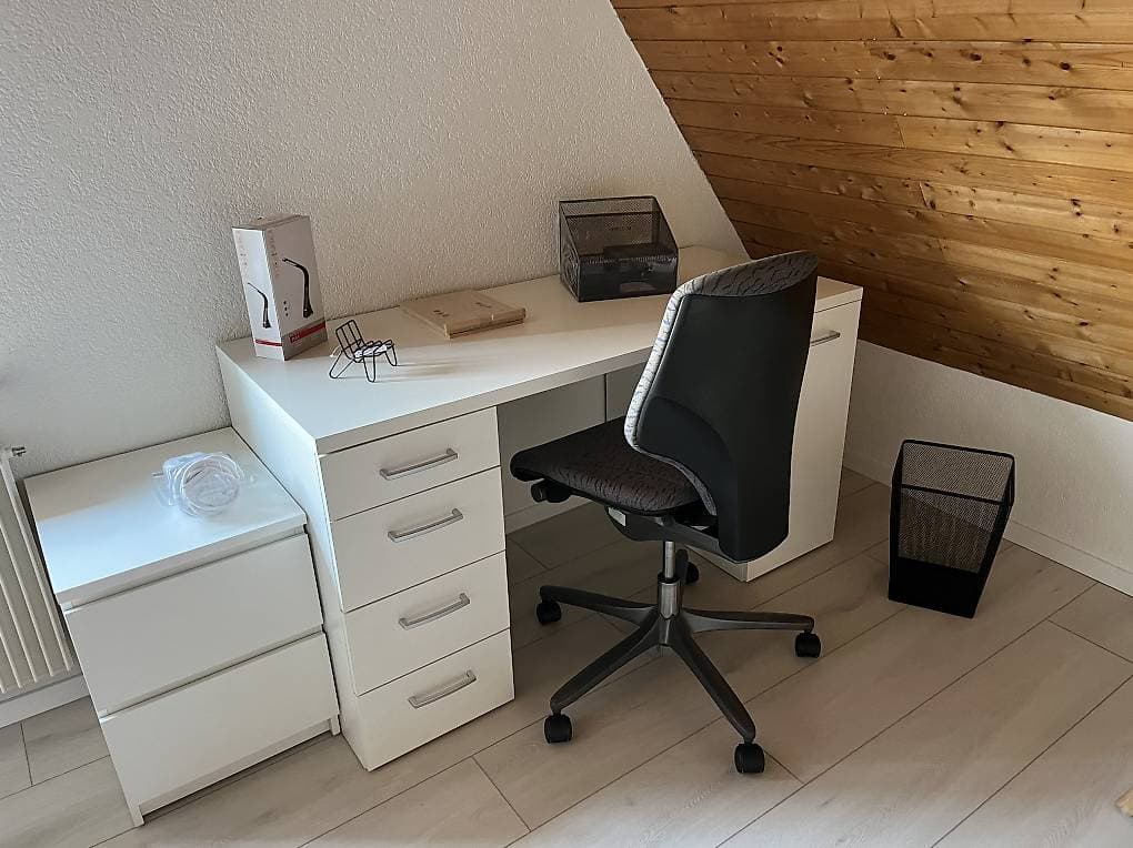 Das Zimmer hat noch 2 Stühle und ein kleiner Tisch und befindet sich im 2. OG eines 3-Familienhaus.