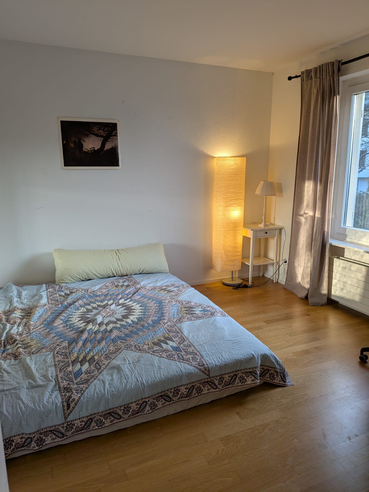 You will be moving into a private room in a bright, beautifully maintained 3.5-room apartment that features views of the Alps from the living room. The room can come furnished (at cost) or unfurnished.
