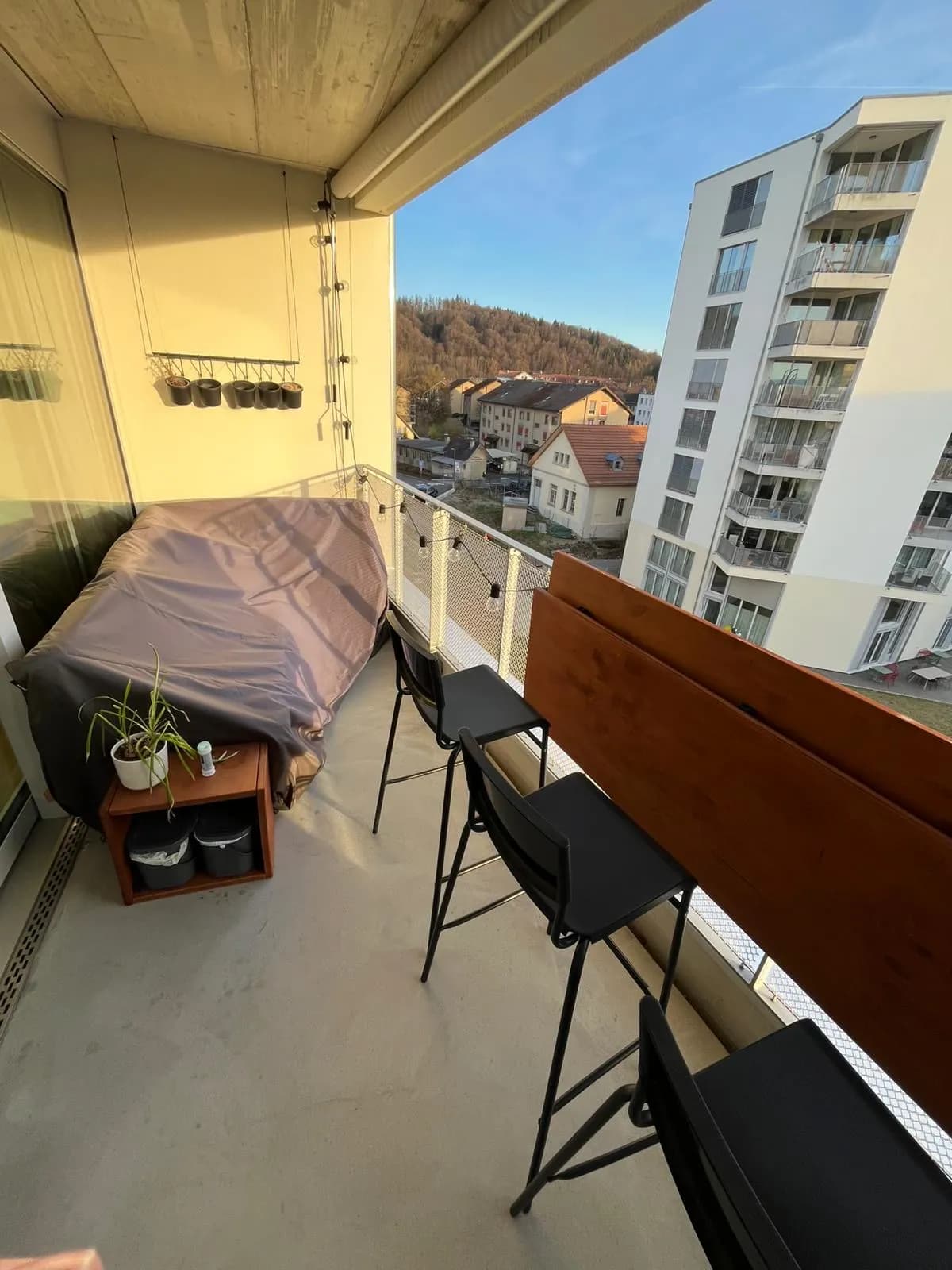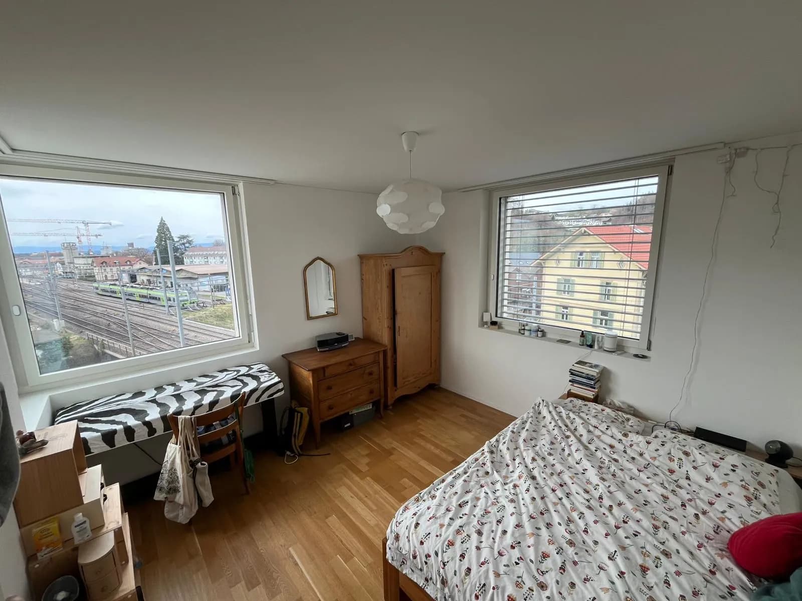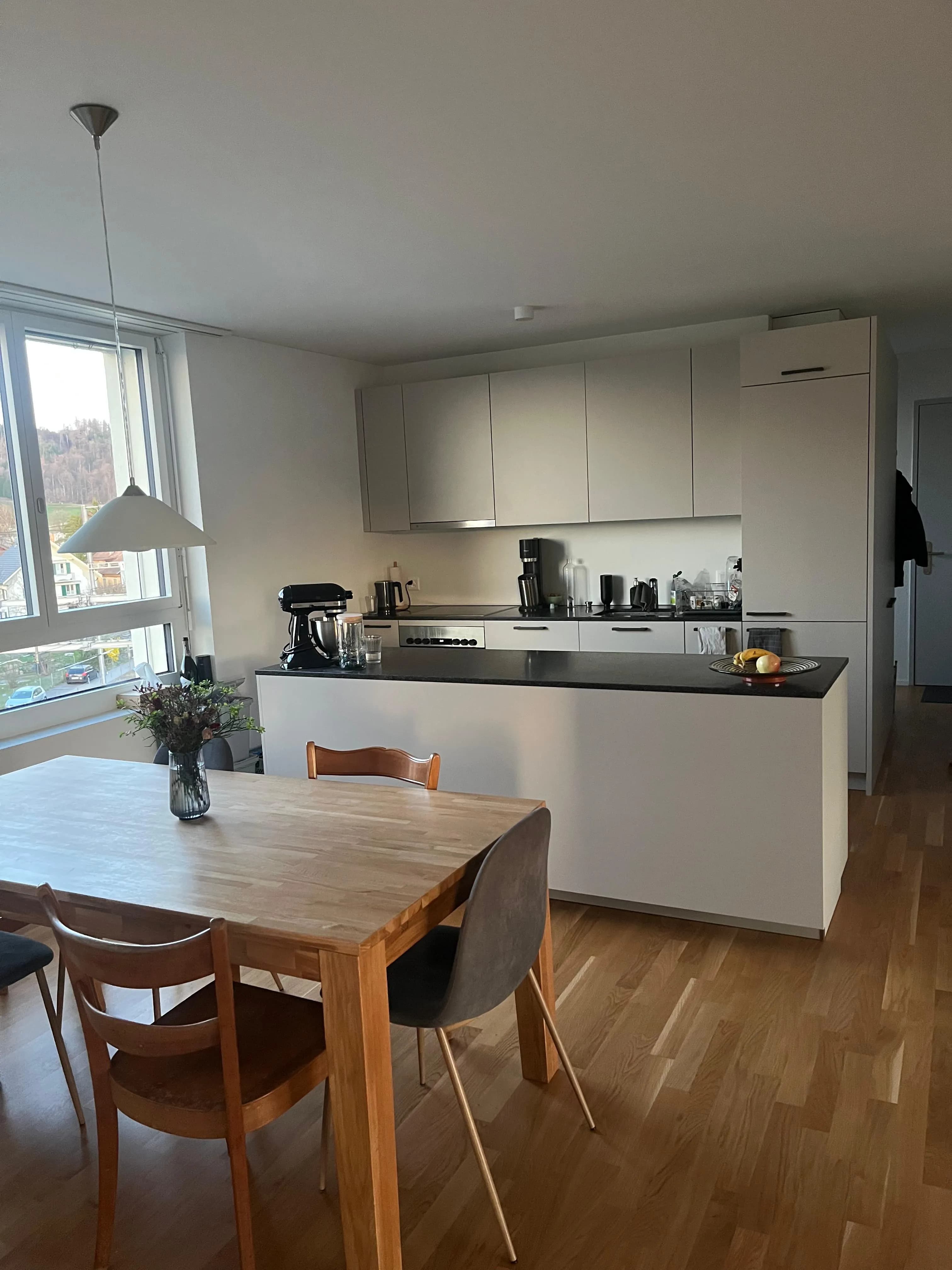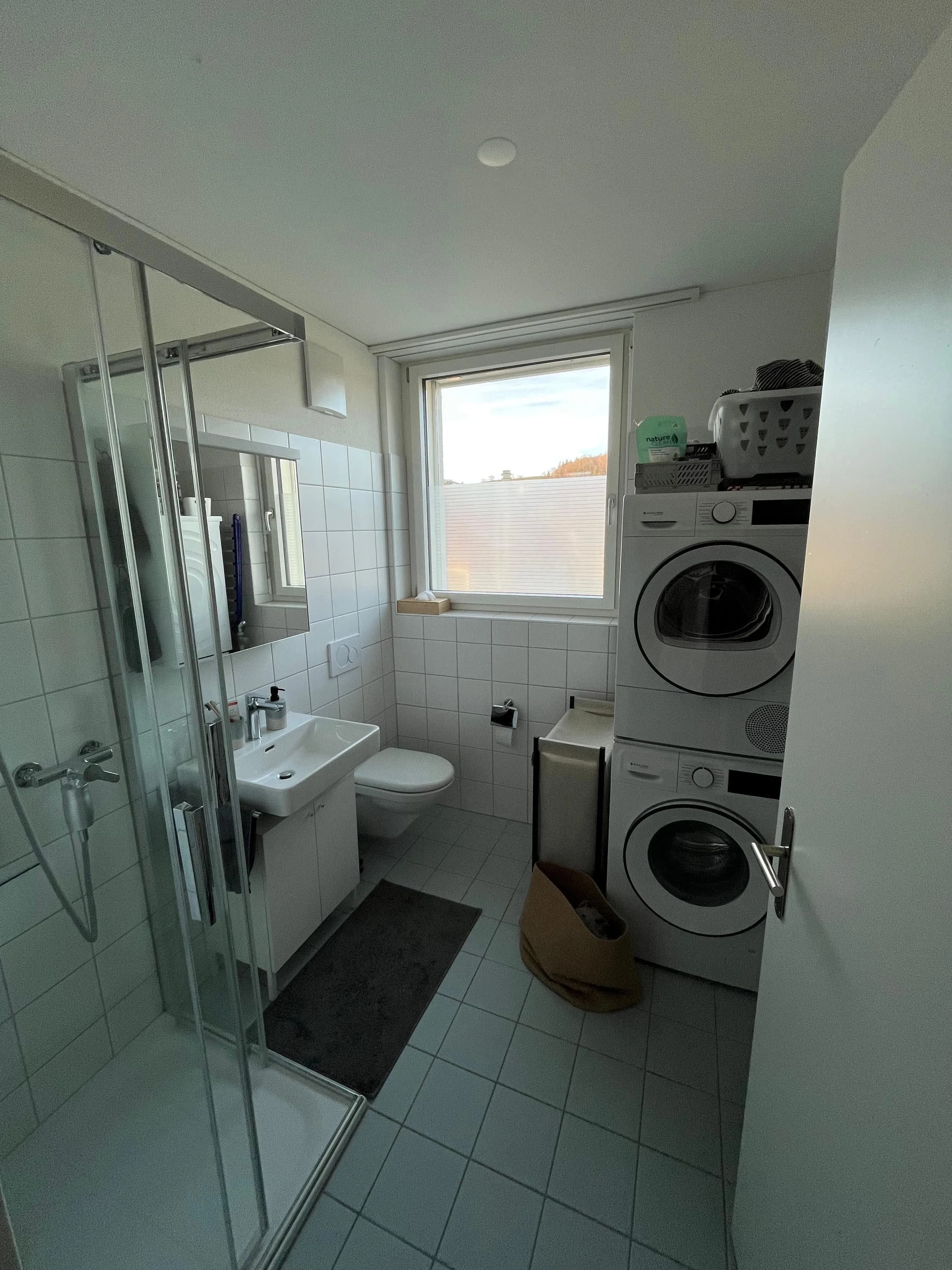 Ist 6 Gehminuten vom Hauptbahnhof Burgdorf entfernt (schnelles Gehen = 4.5min, rennen = 3min... wir haben es schon mehrmals ausprobiert). Migros, Coop und Lidl sind alle <10 Gehminuten erreichbar. Die Wohnung liegt an der Bahnlinie, ist jedoch super schallisoliert. Es gibt 2 Badezimmer, einen Balkon, ein Kellerabteil, einen Fahrradkeller und eine eigene Waschmaschine und Wäschetrockner.