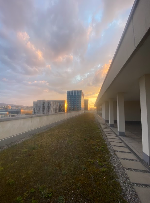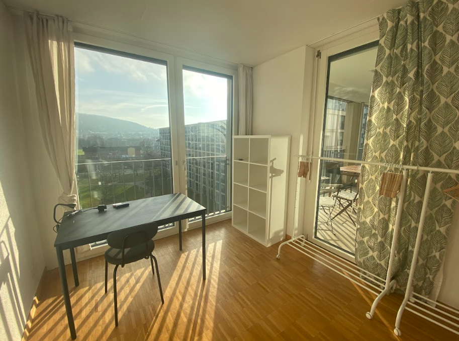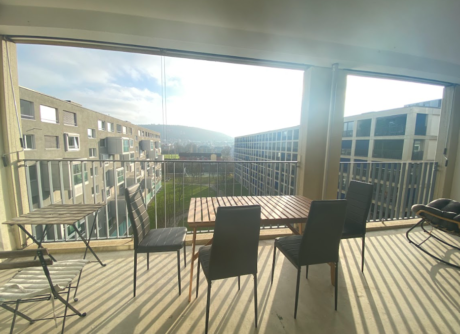 Location-wise it’s very convenient: the bus stops right in front of the building and comes every 5 minutes, you’re in about 2 minutes at Oerlikon station, and it’s around 20 minutes to Zürich HB. ETH Zurich / Irchel is 20min as well and Migros is literally across the street, which is very convenient.