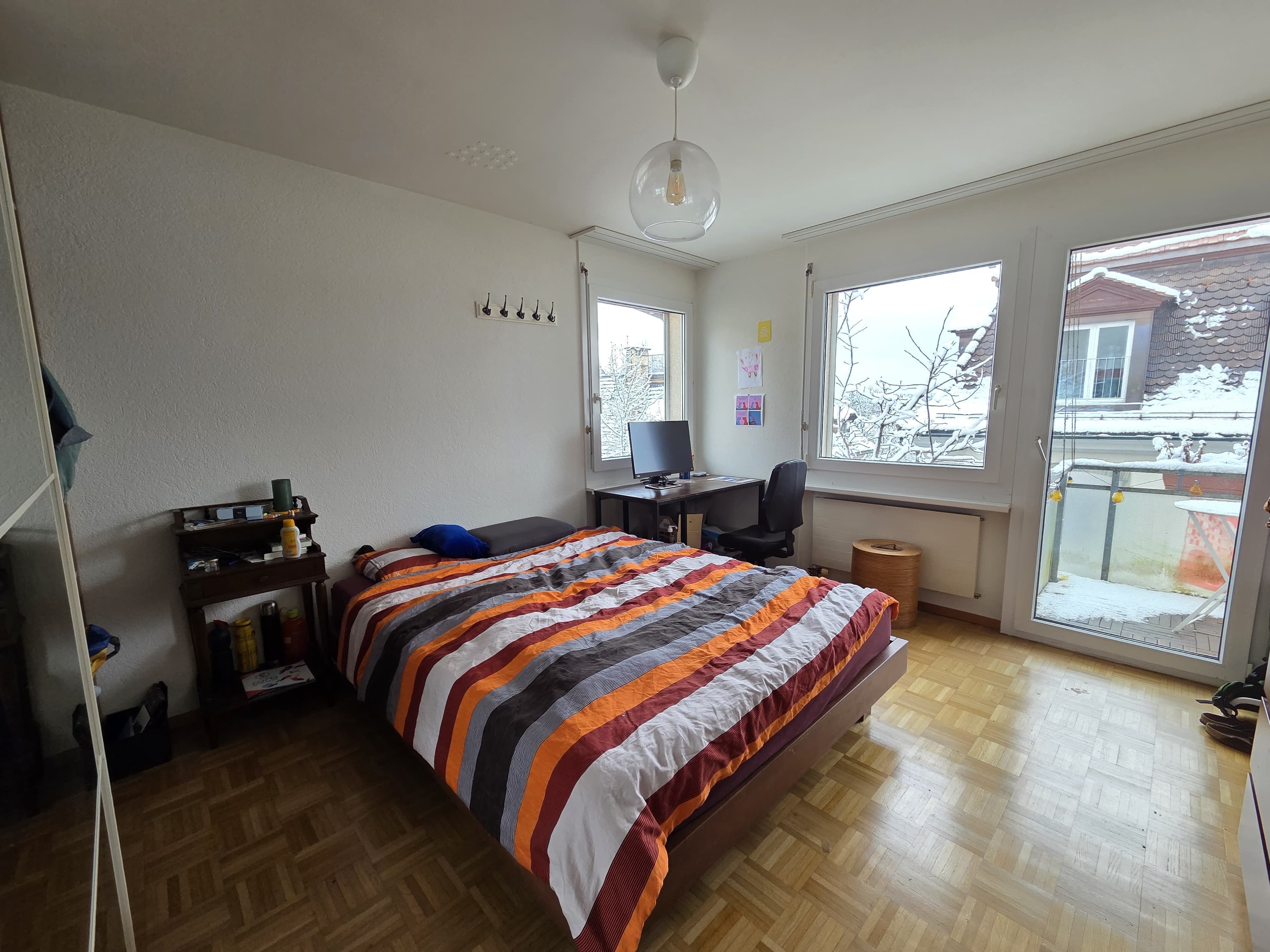 Wir vermieten ein unmöbliertes (teilmöbliert auch möglich) Zimmer mit geteiltem Balkon in unserer Attika-Wohnung (5.5 Zimmer). Das Zimmer ist befristet für 6 Monate (evtl. mit Verlängerung).