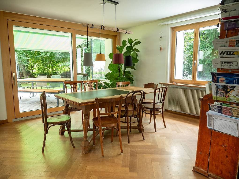 Wir leben gemeinschaftlich ? mit Austausch, gegenseitiger Unterstützung und gleichzeitig viel Raum für Rückzug. Zur gemeinsamen Nutzung gehören: eine grosse Wohnküche, ein gemütliches Wohnzimmer, zwei Badezimmer, zwei WCs, eine grosse Waschküche, mehrere Kellerräume, eine Terrasse, ein Garten und rund 1000 m² Umschwung.