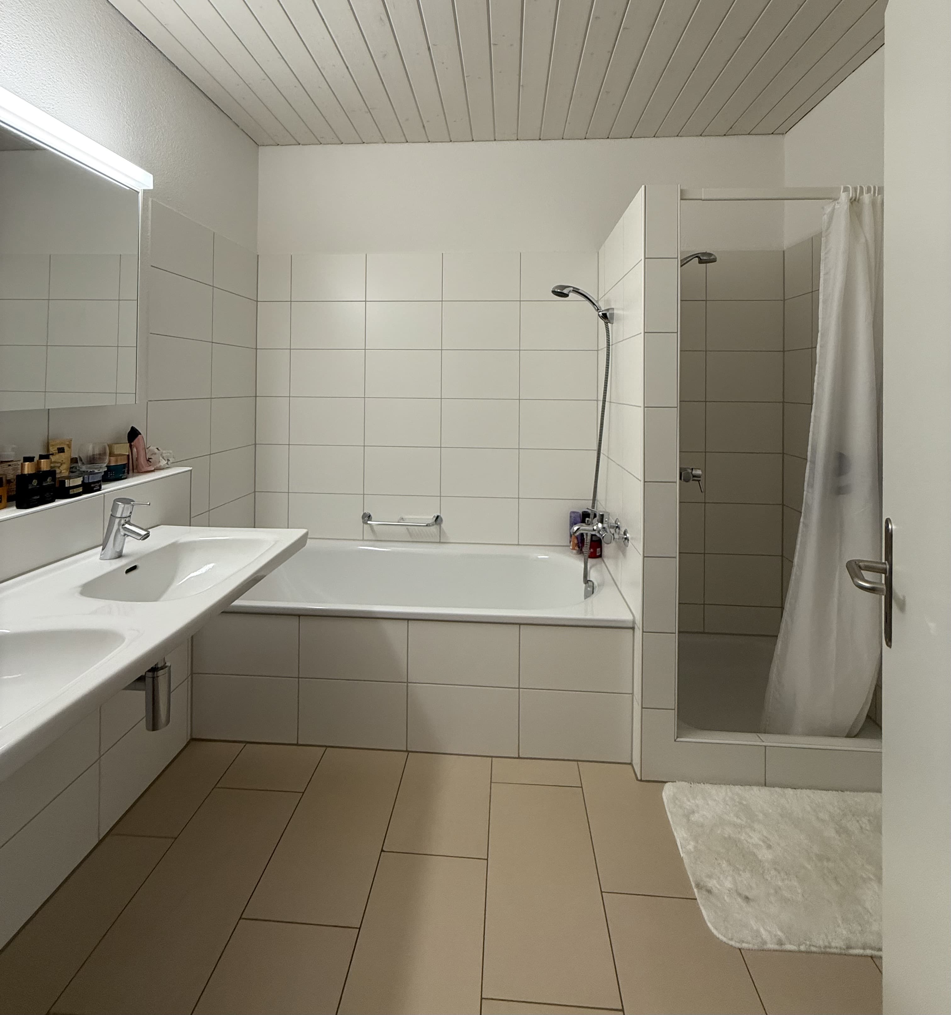 A fully furnished room is available in a shared flat – a bright and spacious 3.5-room duplex with a balcony and two shared bathrooms.
