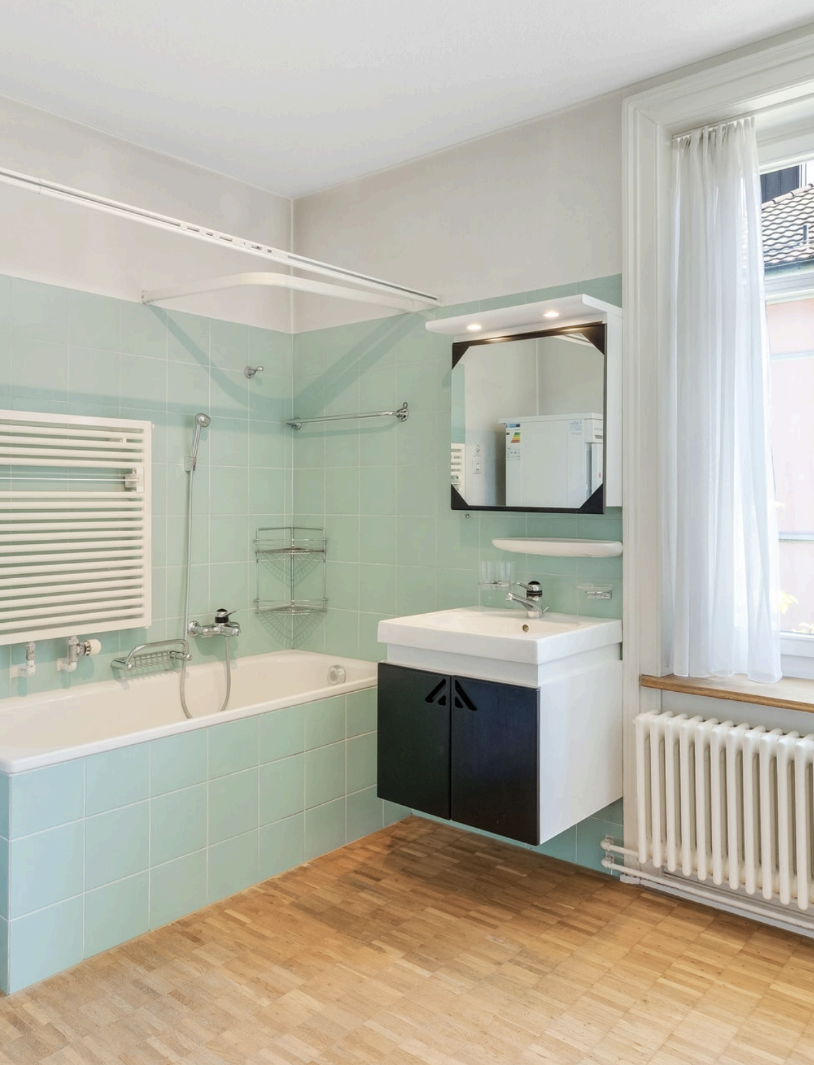 Ob es daraus eine 4er oder 5er WG werden soll, überlassen wir euch. Das Haus beinhaltet eine voll ausgestattete Küche, 1 Bad mit WC, 1 Bad ohne WC und 1 separates WC. Es gibt einen Keller, Waschmaschine und Tumbler sind vorhanden.