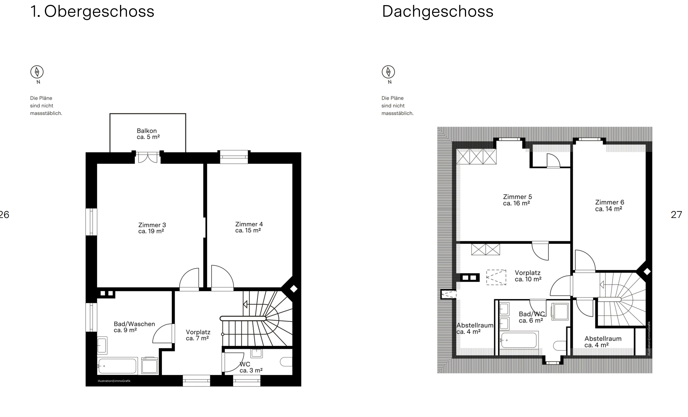 Je nach Zimmergrösse variiert die Miete (s. Grundriss):