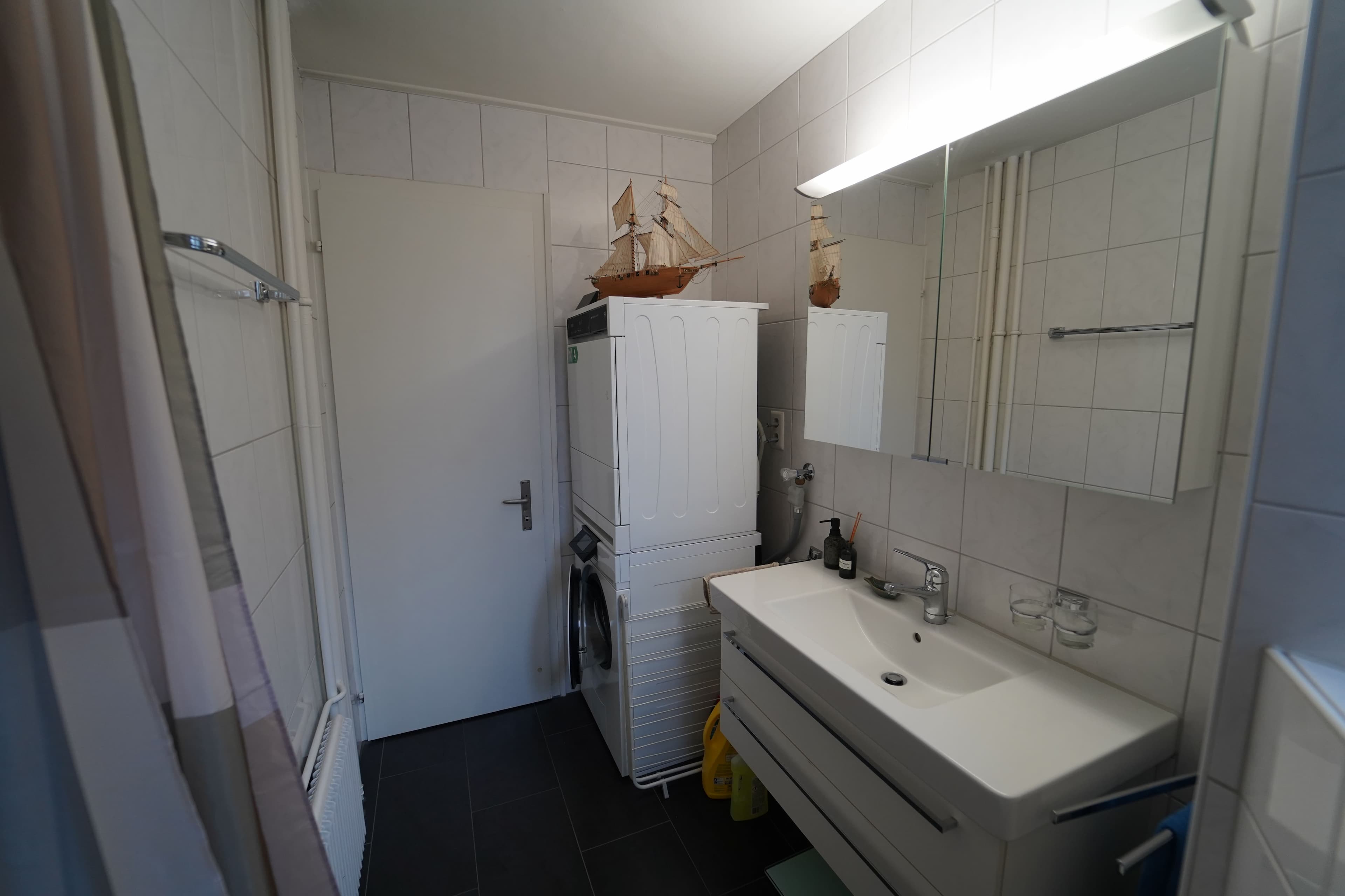 Bad: Ausgestattet mit Dusche/Badewanne sowie eigener Waschmaschine und Trockner.