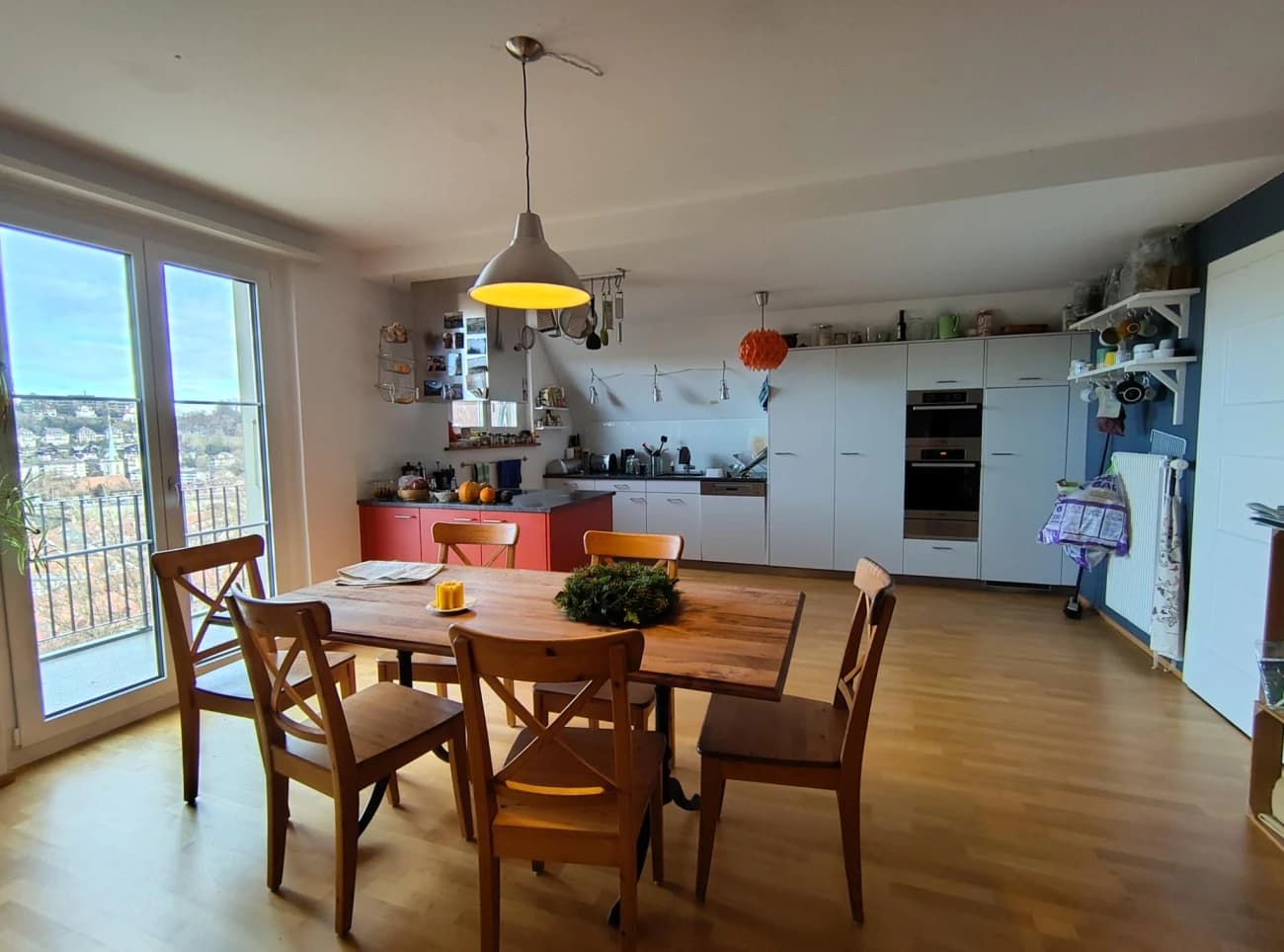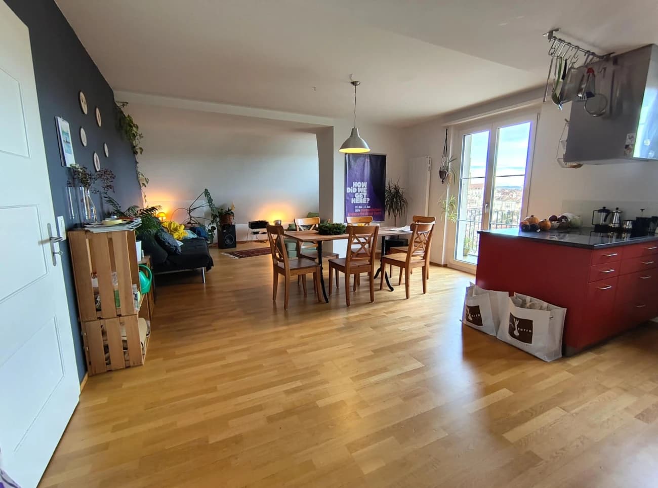 Die Wohnung ist geräumig und hell. Das Herz der WG bildet die moderne, offene Wohn-Ess-Küche. Hier findet das WG-Leben statt, im Winter drinnen im Sommer auf dem Balkon mit der schönsten Aussicht von und auf Bern, der längsten Abendsonne in der ganzen Stadt und spektakulärsten Sonnenuntergängen #SuperlativEnde. Es ist so schön da, dass wir den zugehörigen Garten jeweils fast vergessen.