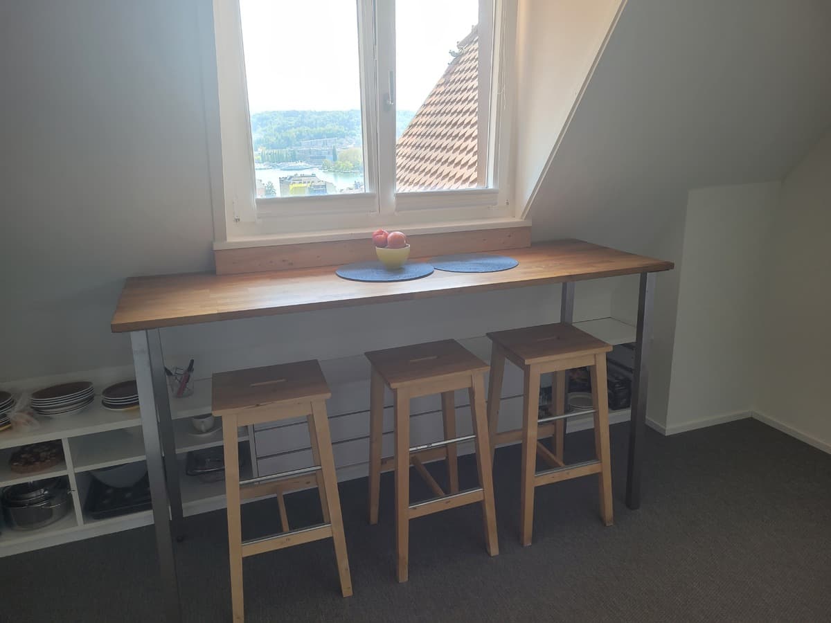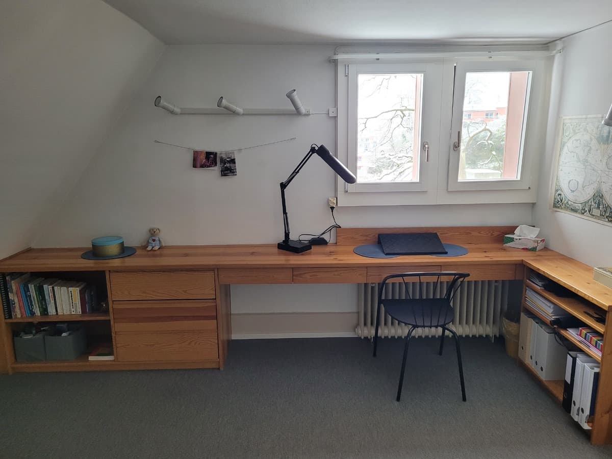 Per 2. November 2025 vermiete ich an eine Frau (Nichtraucherin) ein 14 M grosses WG-Zimmer. Das Zimmer ist teilmöbliert (Kommoden, Schreibtisch, kleiner Einbauschrank, kein Bett) und befindet sich in einer ruhigen 2.5 Zimmer Wohnung (Dachgeschoss, 4. OG ohne Lift) mit einer traumhaften Weitsicht. Die Wohnung ist im guten Zustand und ist voll möbliert .
