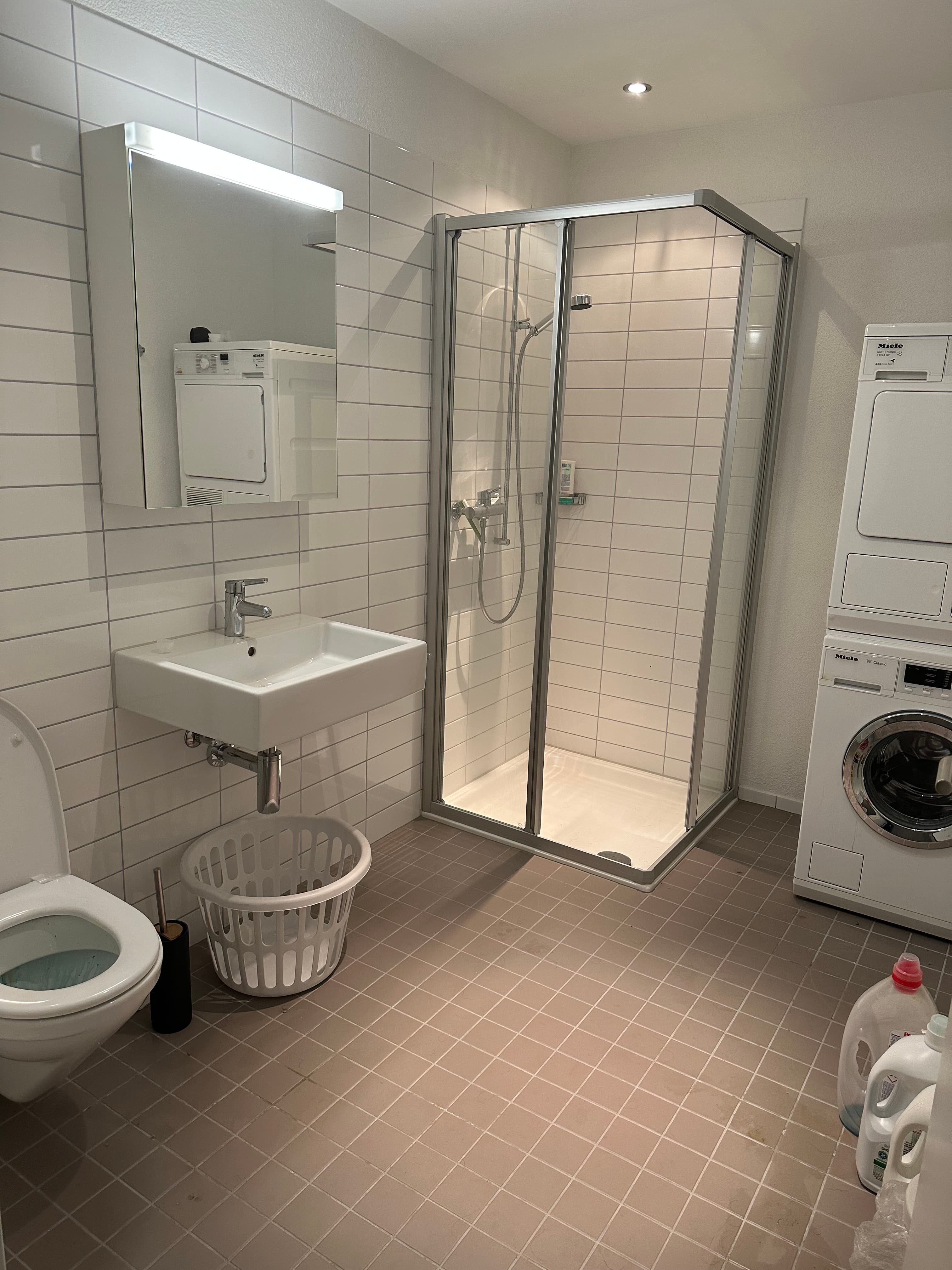 Double bedroom with own separate washing facilities (W/C, shower). Washing machine and tumble dryer are inside the apartment, hence no need for a rota. Communal area with one flat mate are: a modern kitchen, dining area, living room and a spacious balcony. Total size of the shared apartment is 110 square metres.