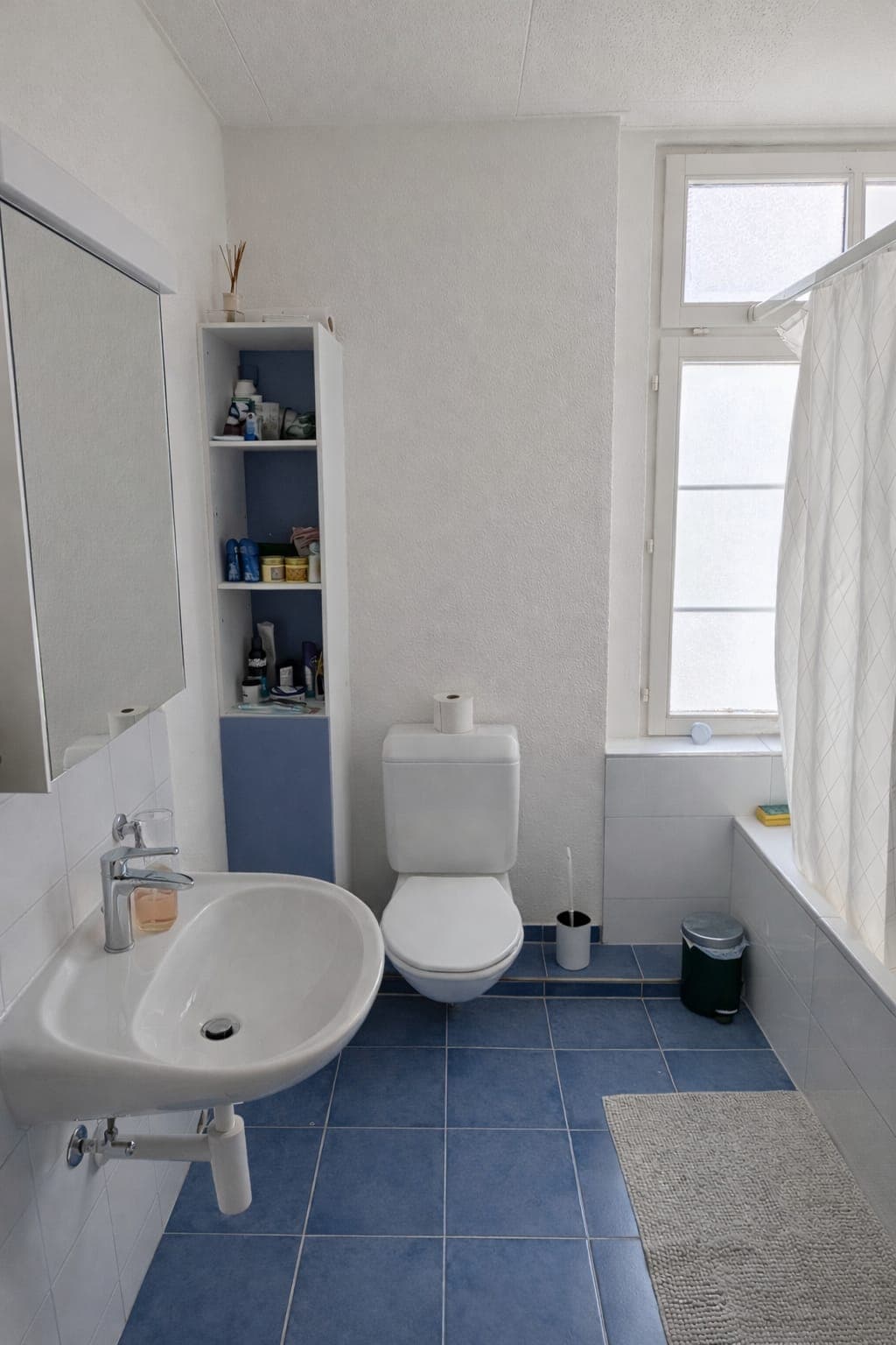 Das Zimmer ist derzeit möbliert, kann aber nach Wunsch angepasst oder unmöbliert übernommen werden. Die grosszügige 5-Zimmer-Wohnung ist sehr hell und verfügt über ein Badezimmer sowie eine renovierte Küche mit Geschirrspüler, die ausreichend Platz zum gemeinsamen Kochen bietet. Waschmaschine und Tumbler stehen bequem im Erdgeschoss zur Verfügung.