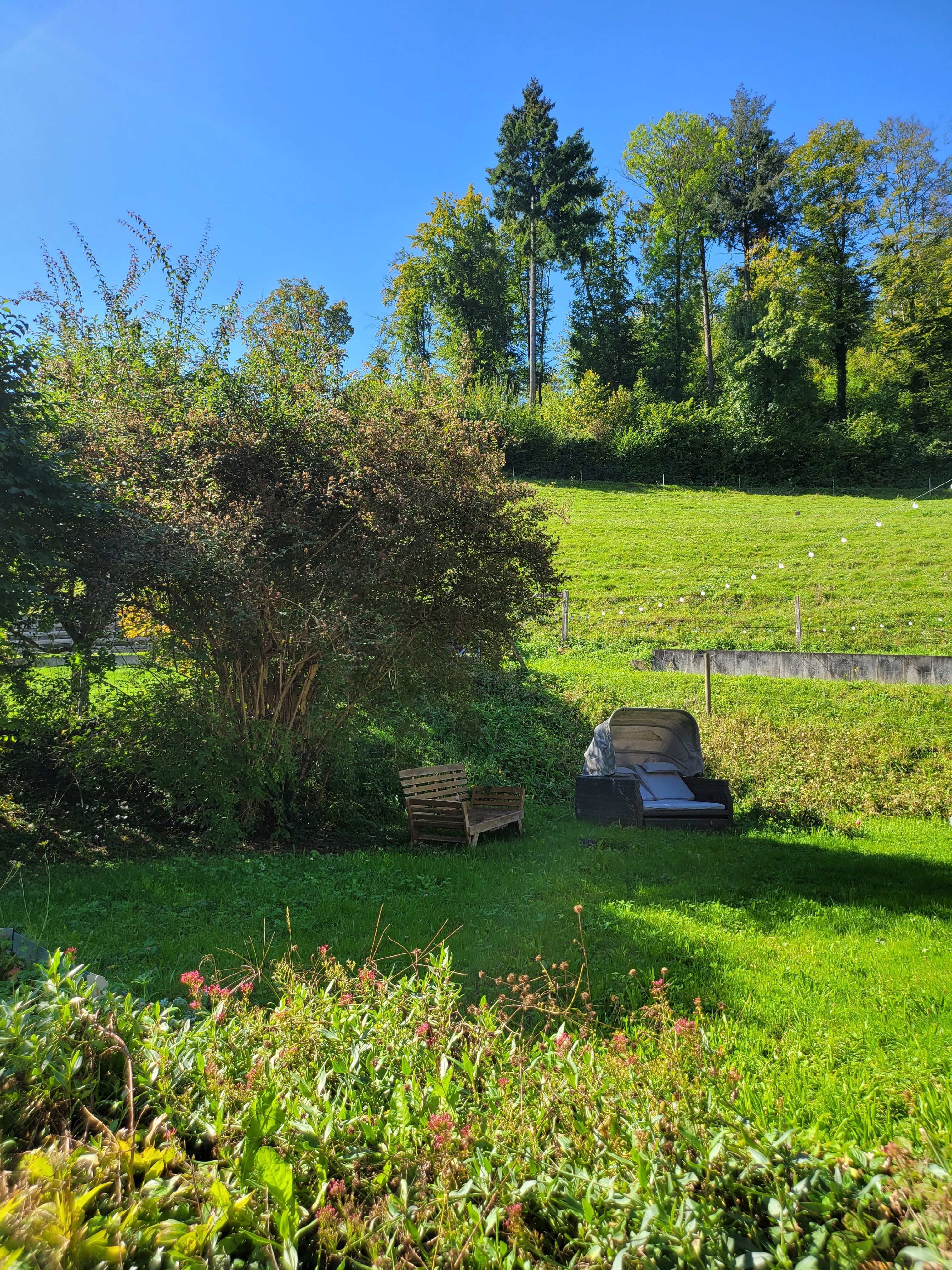 Eusi Villa Laubibunt beeinhaltet e grosse Keller inkl. Wöschkuchi und Naturkeller, e Estrich, e offeni Kuchi mit grosser Stube und e Garte inkl. Gmüesbeetli und kleine Füürstell. Dr Garte sowie s Huus wird vo eus allne regelmässig putzt und Unterhalte.