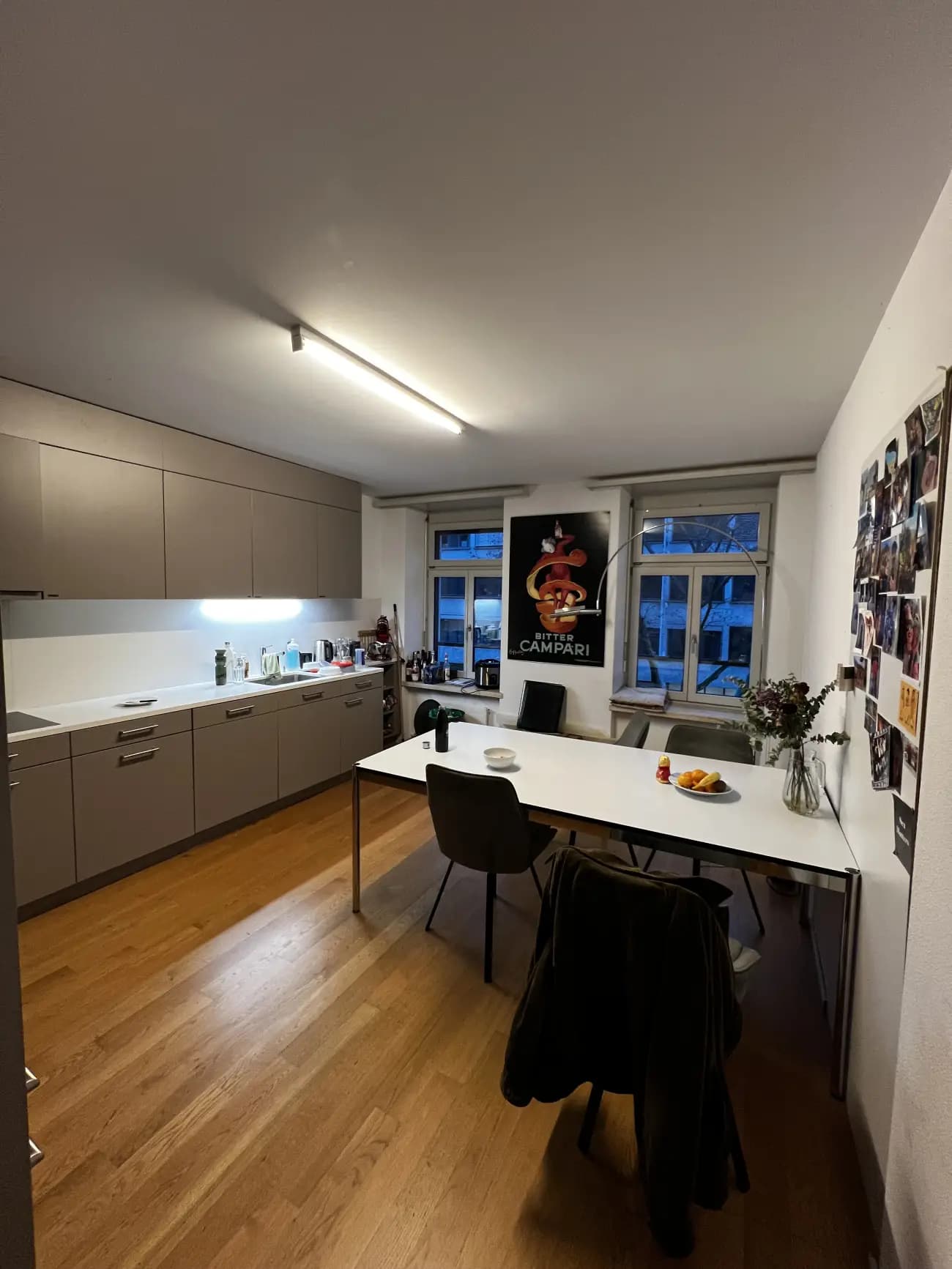 Die Wohnung liegt direkt am Limmatplatz, gegenüber der Post – super zentral mit Restaurants, Einkaufsmöglichkeiten, Bars sowie Tram & Bus praktisch vor der Tür. Dank moderner Fenster ist es trotzdem angenehm ruhig.