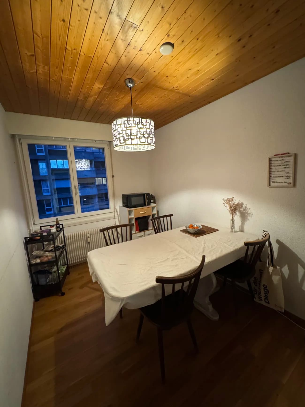 Das Zimmer befindet sich in einer 4.5 Zimmer Wohnung im 4. Stock mit Lift. Zudem beinhaltet die Wohnung: Küche mit Stauräume, Essbereich, offenes Wohnzimmer, 2 Bäder (1x WC, 1xWC+Dusche), Balkon und Kellerabteil.