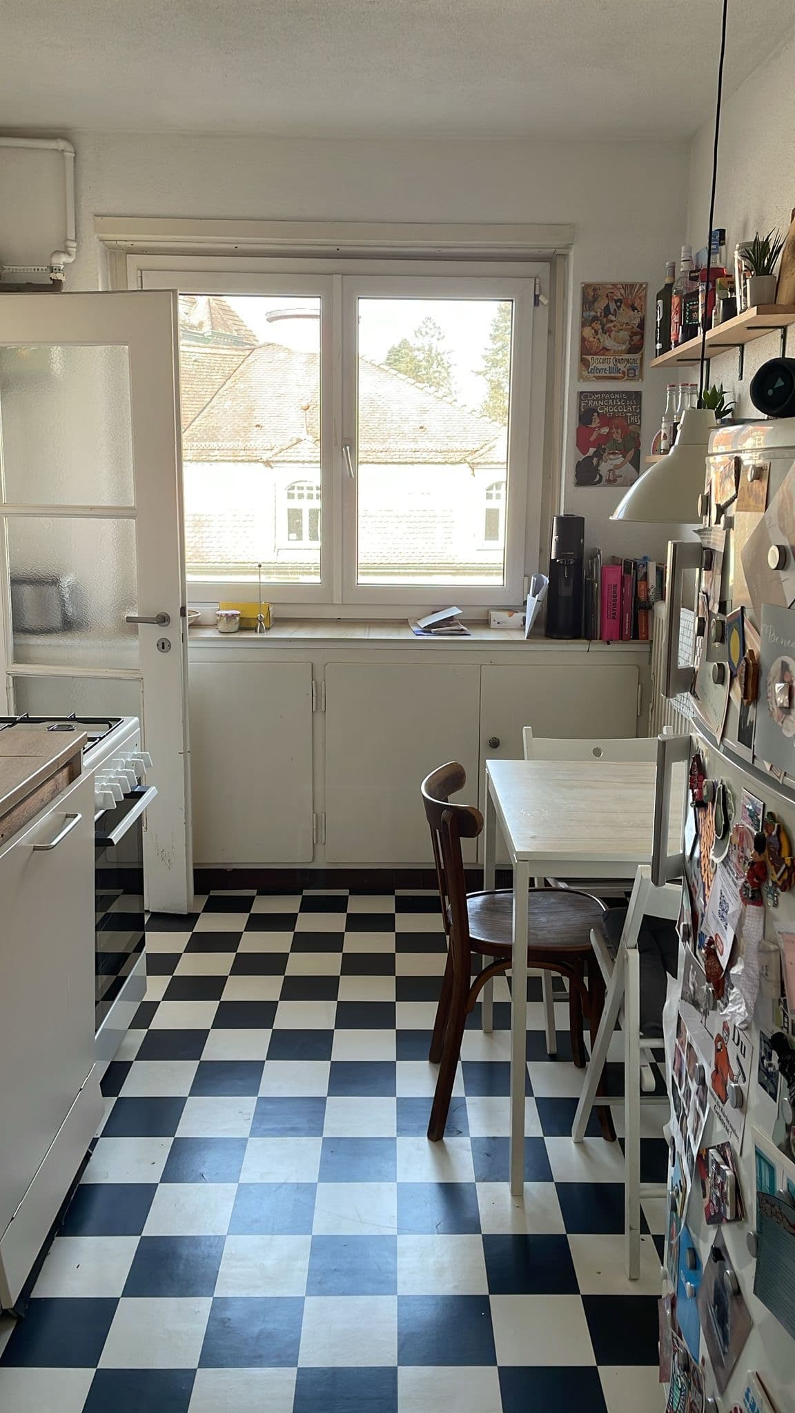 Die Wohnung hat 4.5 Zimmer und ist im 3. Stock im Schlossbergquartier. In unserem gemütlichen Wohnzimmer mit Zugang zum Balkon verbringen wir gerne Filmabende oder spielen zu kompetitiv Brettspiele. Wenn wir abends gemeinsam da sind, kochen wir zusammen, in anderen Phasen auch wochenlang nicht. Die Küche ist mit Abwaschmaschine, Mikrowelle, Gasherd und -ofen ausgestattet. Die Waschküche wird mit drei anderen Parteien geteilt, waschen ist unkompliziert fast jederzeit möglich, und hat einen Secomat.