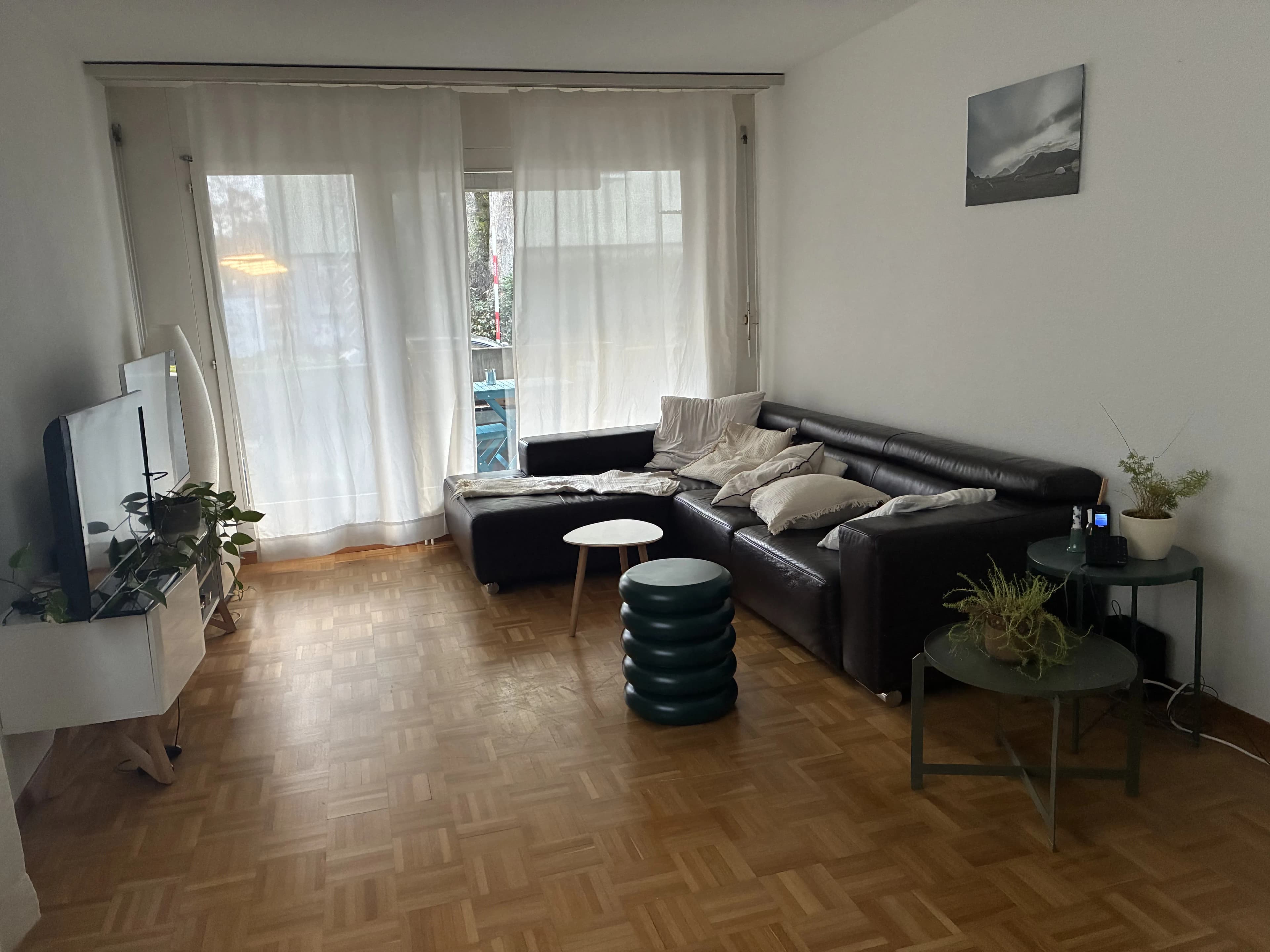 Das Zimmer ist etwa 15 m2 gross und hat direkten Zugang zum Balkon. Zudem verfügt die Wohnung über ein grosses Wohnzimmer, ein Bad (mit WC) und einem separaten kleinen WC sowie einer kleinen Küche. Der Balkon lädt vor allem im Sommer zum Verweilen ein. Eine Waschmaschine und ein Trockner befinden sich im Haus, bei denen man sich jeweils einschreiben kann.