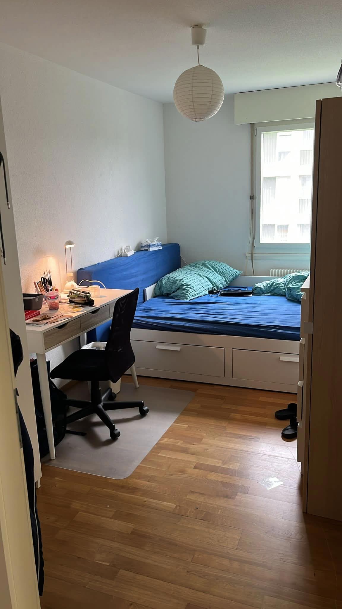 Bei Interesse werden von der Vormieterin ein weisser Schrank (gratis), Matratze und Bettgestell (nicht auf dem Bild) zur Verfügung gestellt.