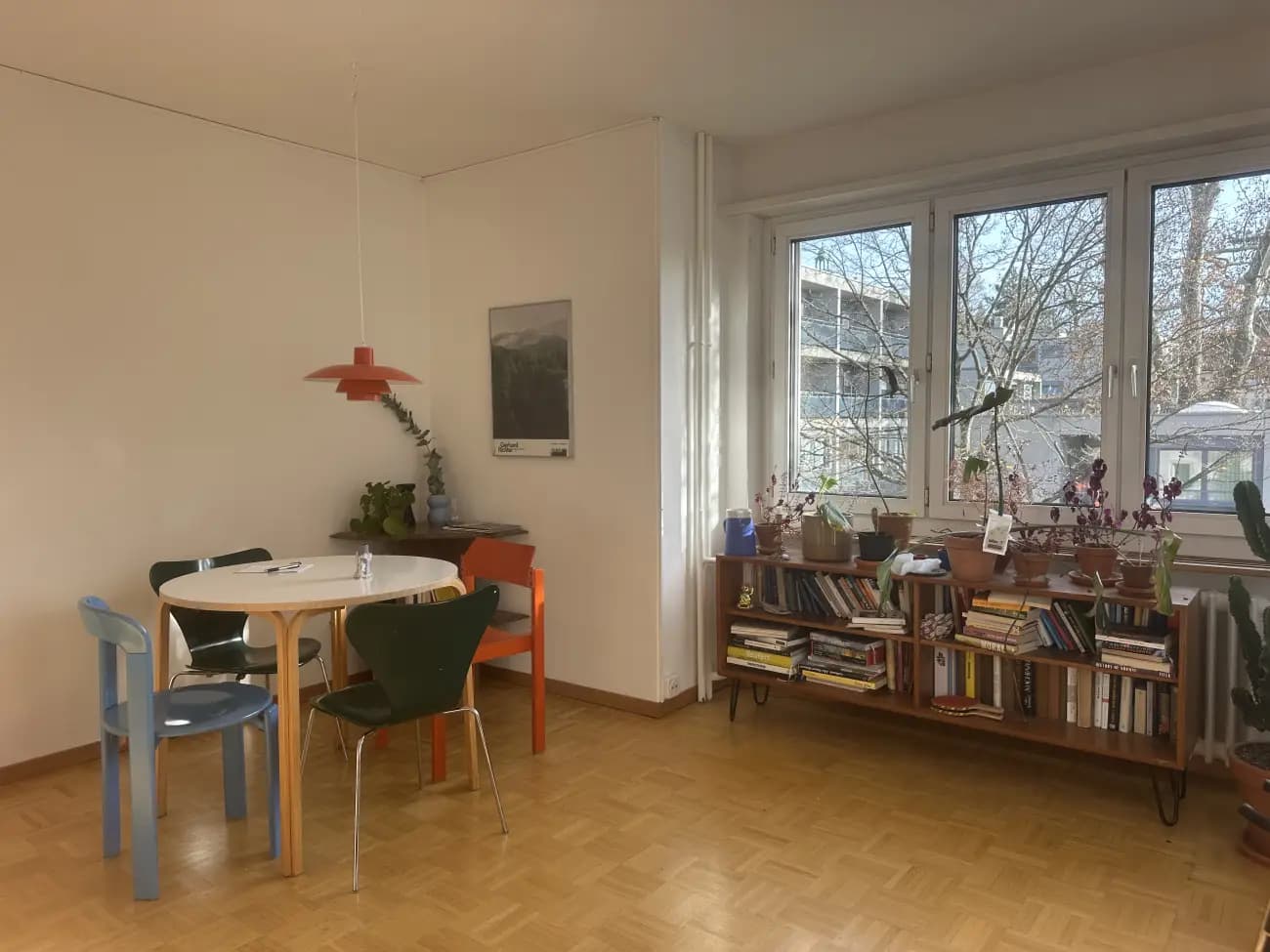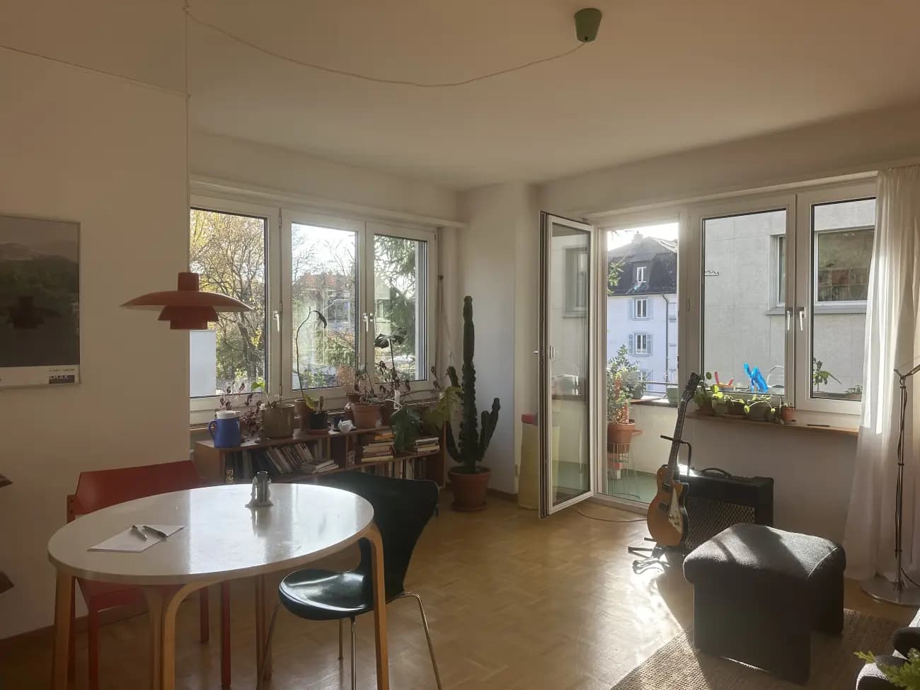 Die 3.5-Zimmer-Wohnung (insg. 67qm) liegt im schönen Quartier Wipkingen, Kreis 10 - nähe Röschibachplatz, Limmat und Käferberg. Bars (wie zb. Kafischnaps oder Nordbrücke), Essens- und Einkaufsmöglichkeiten liegen direkt um die Ecke. Die ÖPNV-Anbindung ist super, die Bushaltestelle Nürenbergstrasse und der Bahnhof Wipkingen sind in ca 2/3min zu Fuss zu erreichen. Der Hauptbahnhof Zürich liegt nur ca 10min mit dem Rad entfernt.