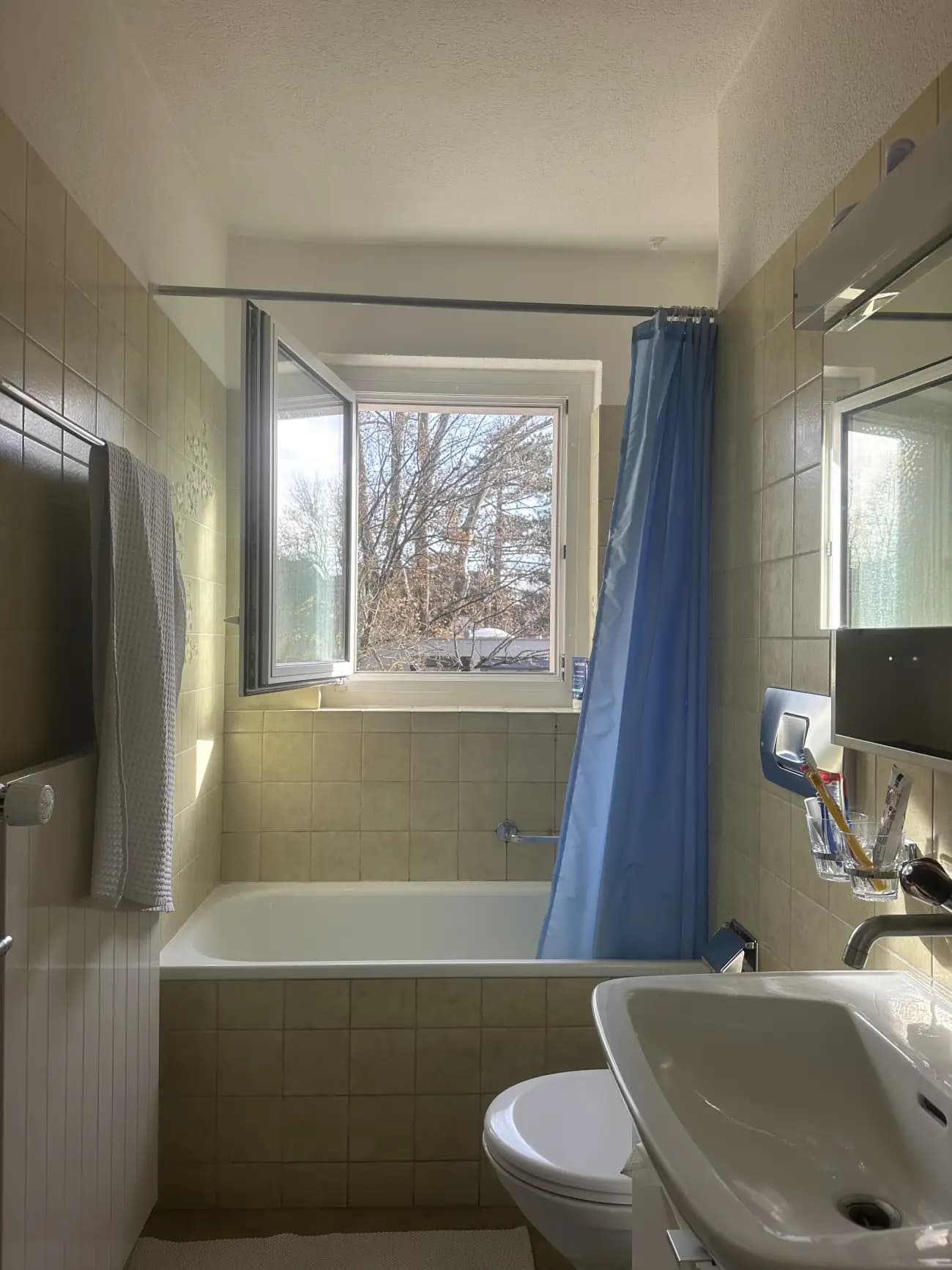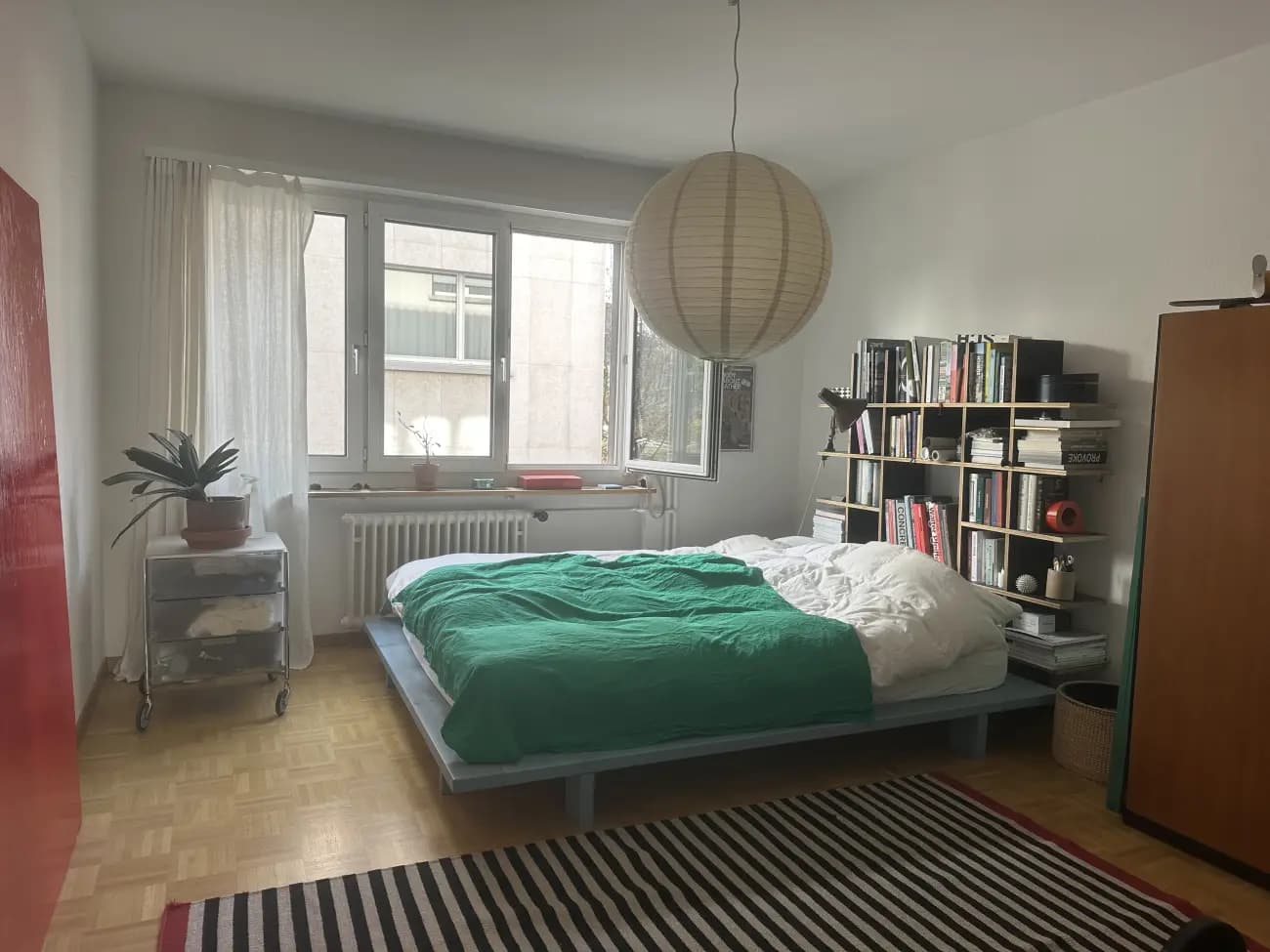 Das zu vermietende WG-Zimmer ist ca 15qm gross, ummöbliert und hat einen schönen Parkettboden. Die Wohnung hat einen tollen Balkon mit Blick ins Grüne und ein grosses, lichtdurchflutetes Wohnzimmer.