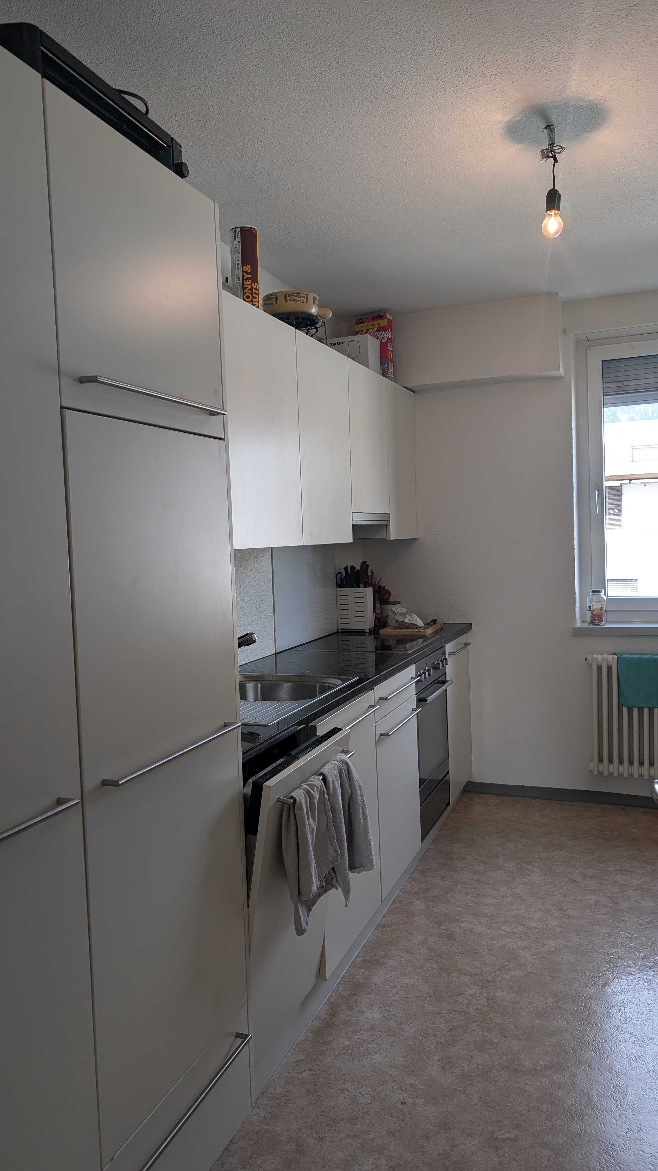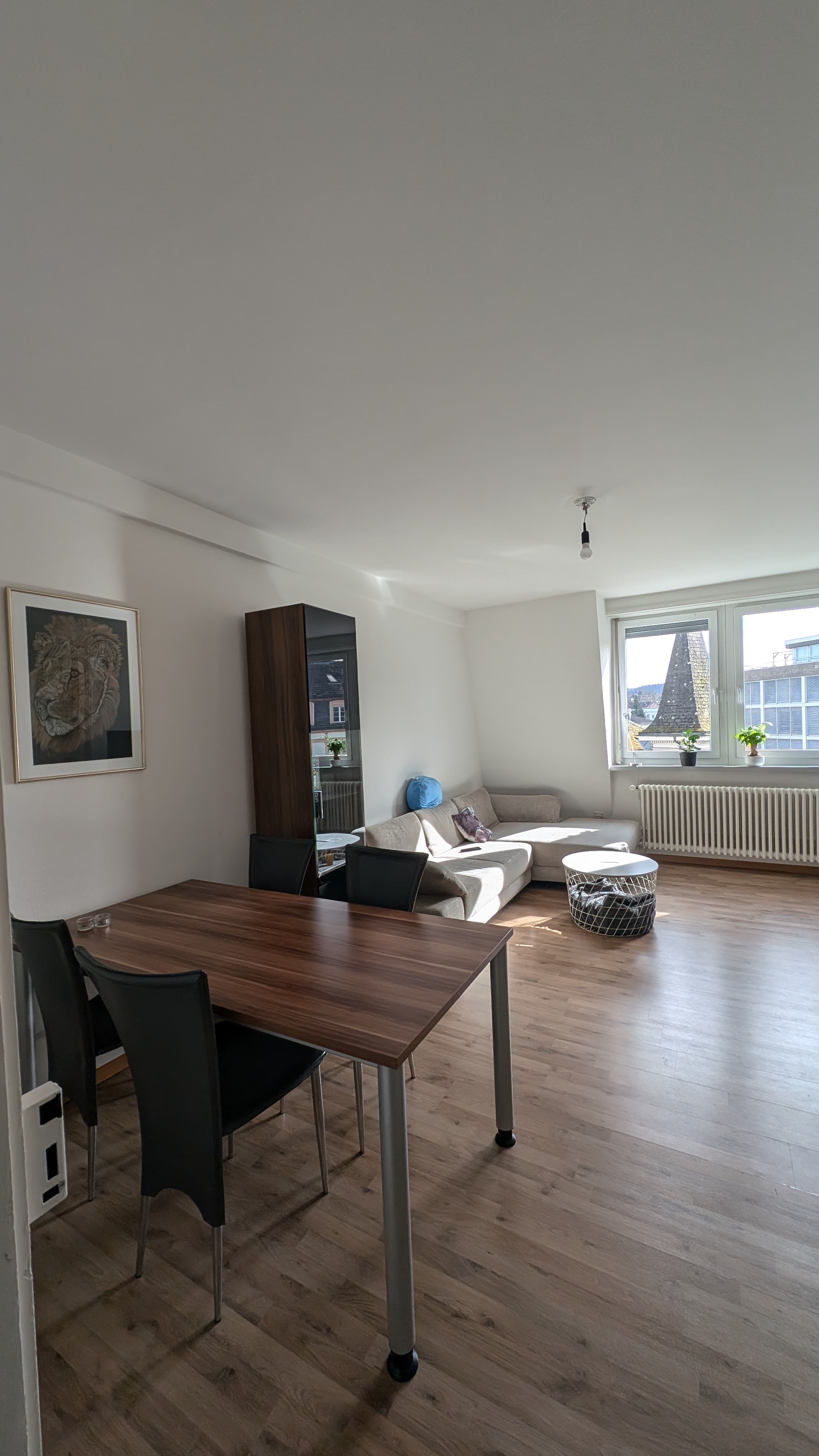 Die Wohnung ist hell, freundlich und gut geschnitten. Durch das grosse Wohnzimmer entsteht ein angenehmes WG-Gefühl mit genügend Platz für gemeinsame Plauschabende.