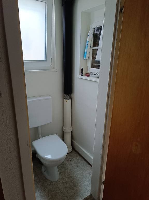 Küche ist eingerichtet, WC auf dem Flur, Dusche im Keller (Waschküche).