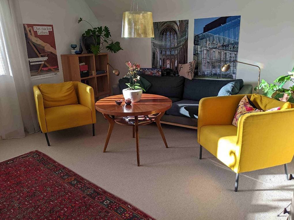 Nel caso anche tu abbia più piacere nel concetto della condivisione invece che cacciarsi in un mini-appartamento mi puoi scrivere. L´affitto della camera (850 CHF al mese) s´intende incluso un forfait per le spese (con conguaglio alla fine dell´anno). Al momento dell´accordo ci sarà da versare una cauzione di 2.500 CHF.