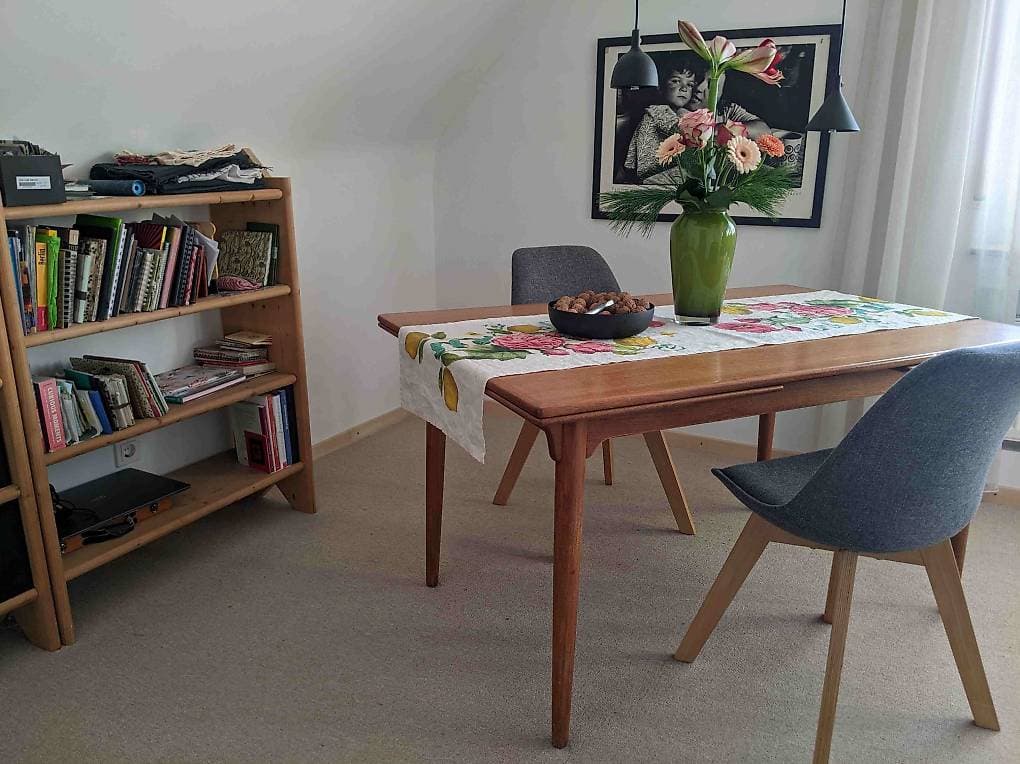 Io sono tedesca e ho 58 anni. Lavoro come arredatrice d´interni / commerciale. Nel mio tempo libero aggeggio in casa e in cucina, leggo, m´incontro con amici (anche a casa), canto, suono un po il flauto. Il week end mi piace andare fuori città a camminare.