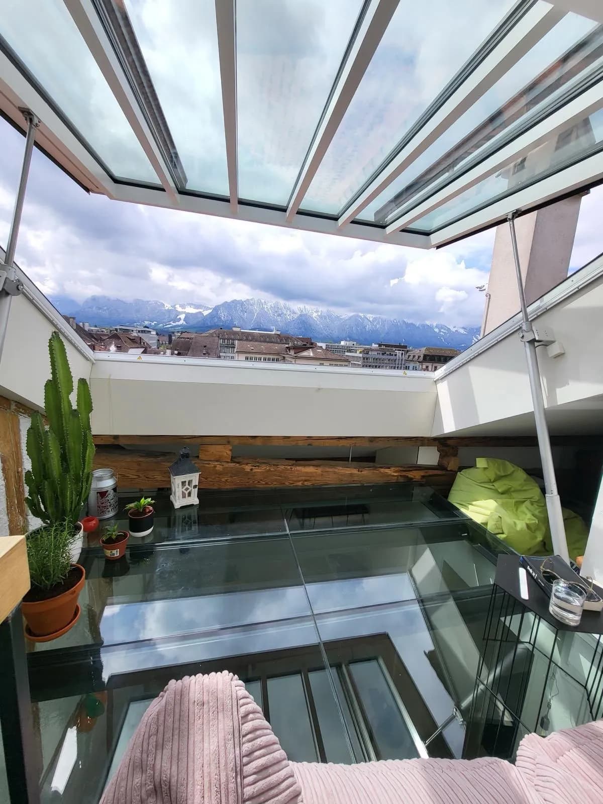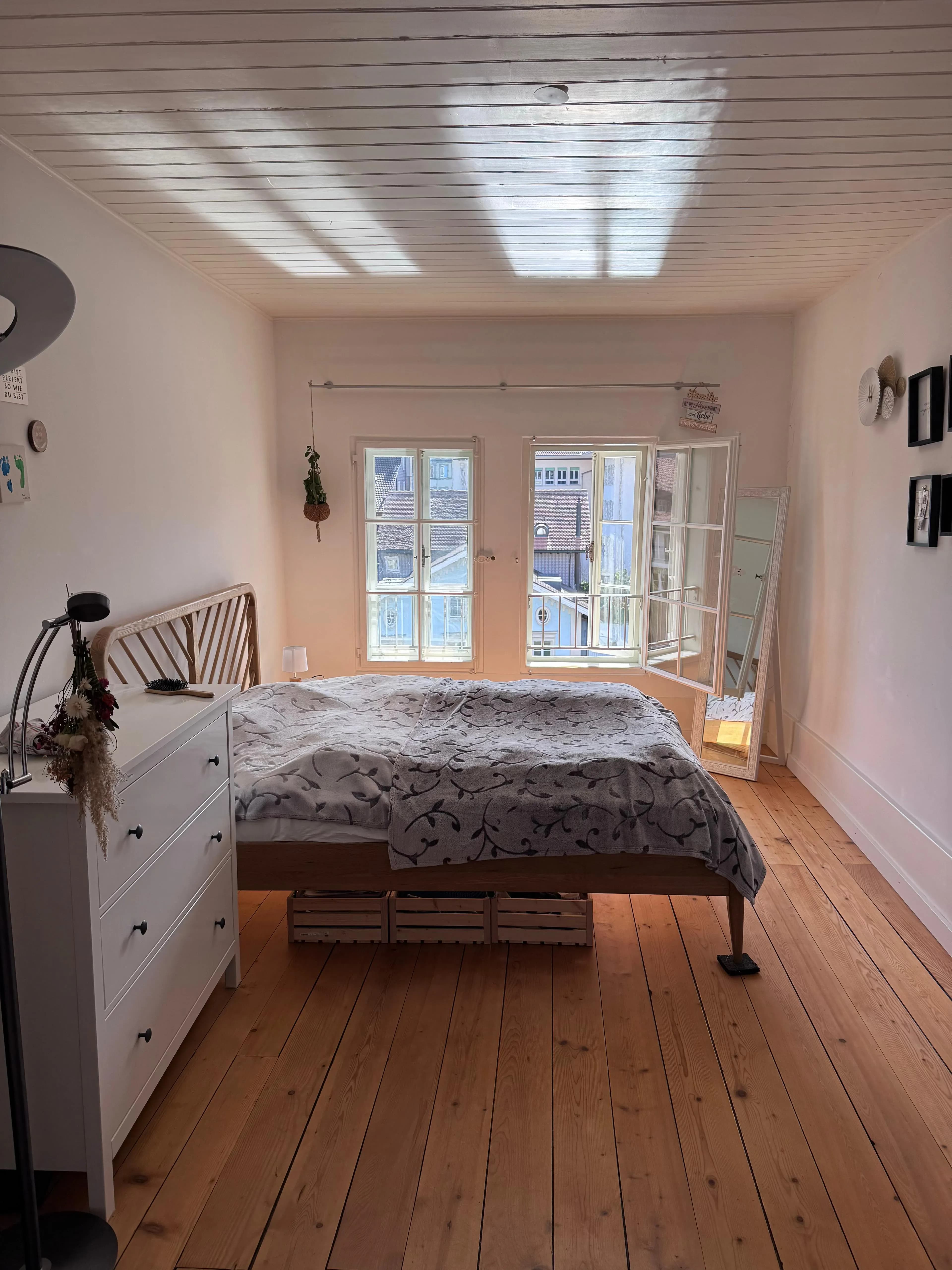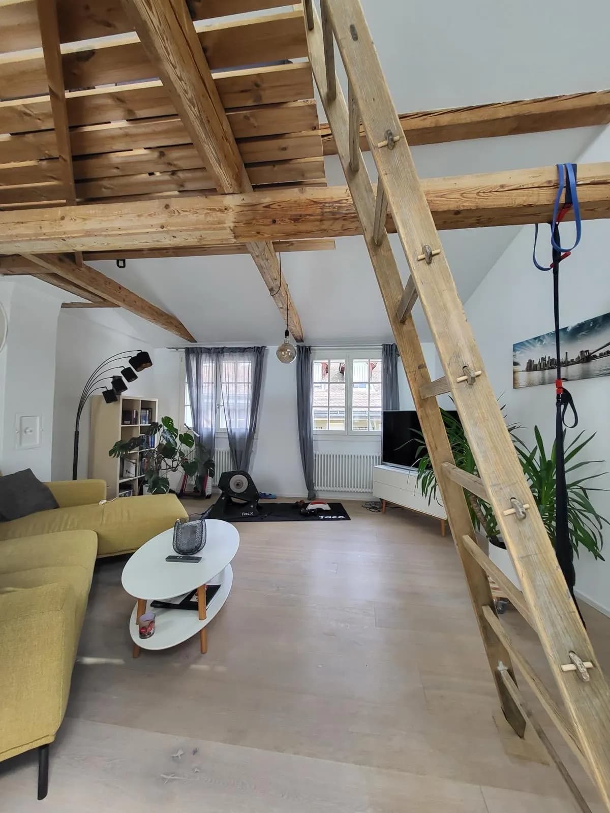 Das Zimmer ist sonnig mit Sicht auf die Aare und Stockhorn. Die 5.5 Zimmer Maisonette Wohnung befindet sich direkt am Aarequai in Thun und ist wenige Gehminuten vom Mühleplatz entfernt. Die moderne Wohnung verteilt sich über zweieinhalb Stöcke: der erste Stock mit modernem Bad und drei Schlafzimmer, der zweite mit offener Küche, einem zweiten Bad, einem Wohnzimmer und Waschturm (Waschmaschine sowie Tumbler). Eine Etage weiter oben befindet sich das Herzstück der Wohnung: unsere bedachte Terrasse mit Blick auf den Niesen sowie das Stockhorn. Wir haben dein Interesse geweckt? Dann komm es dir anschauen.