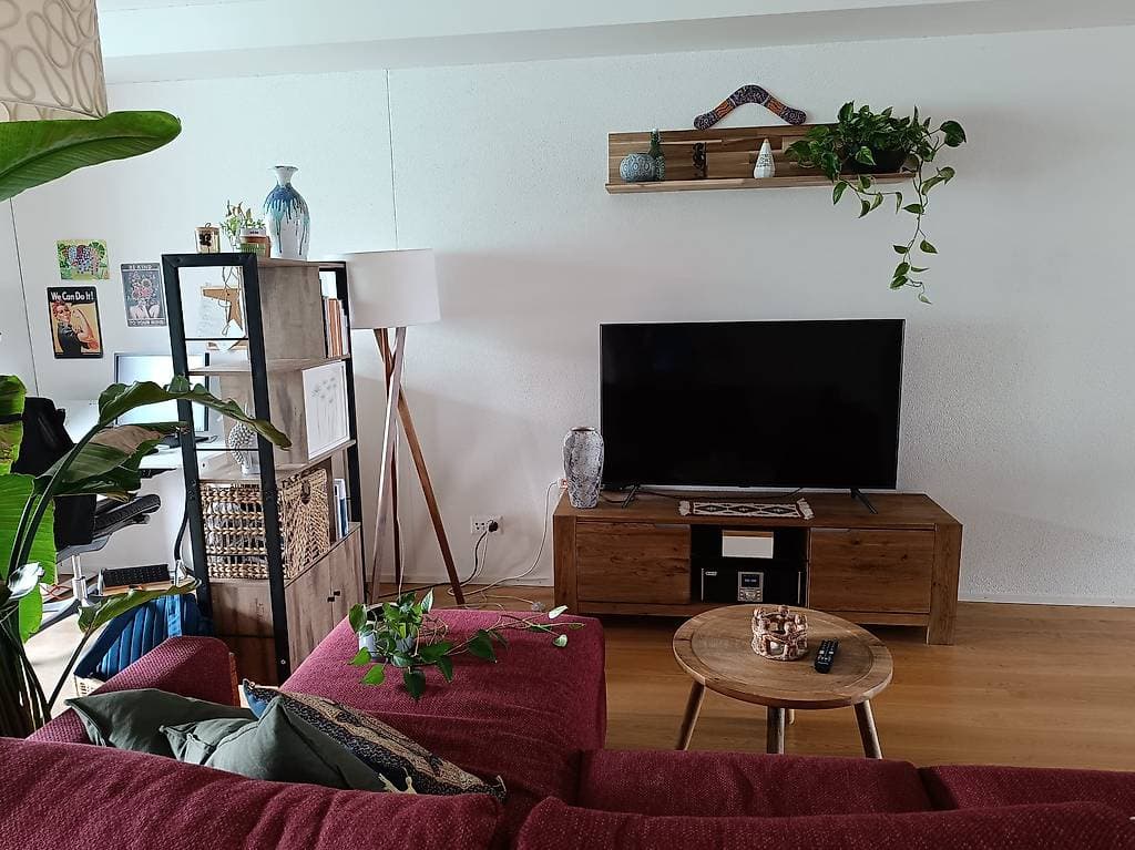 \- ein gemütliches Wohnzimmer (mit einer Home-Office-Ecke, die du gerne nutzen kannst)