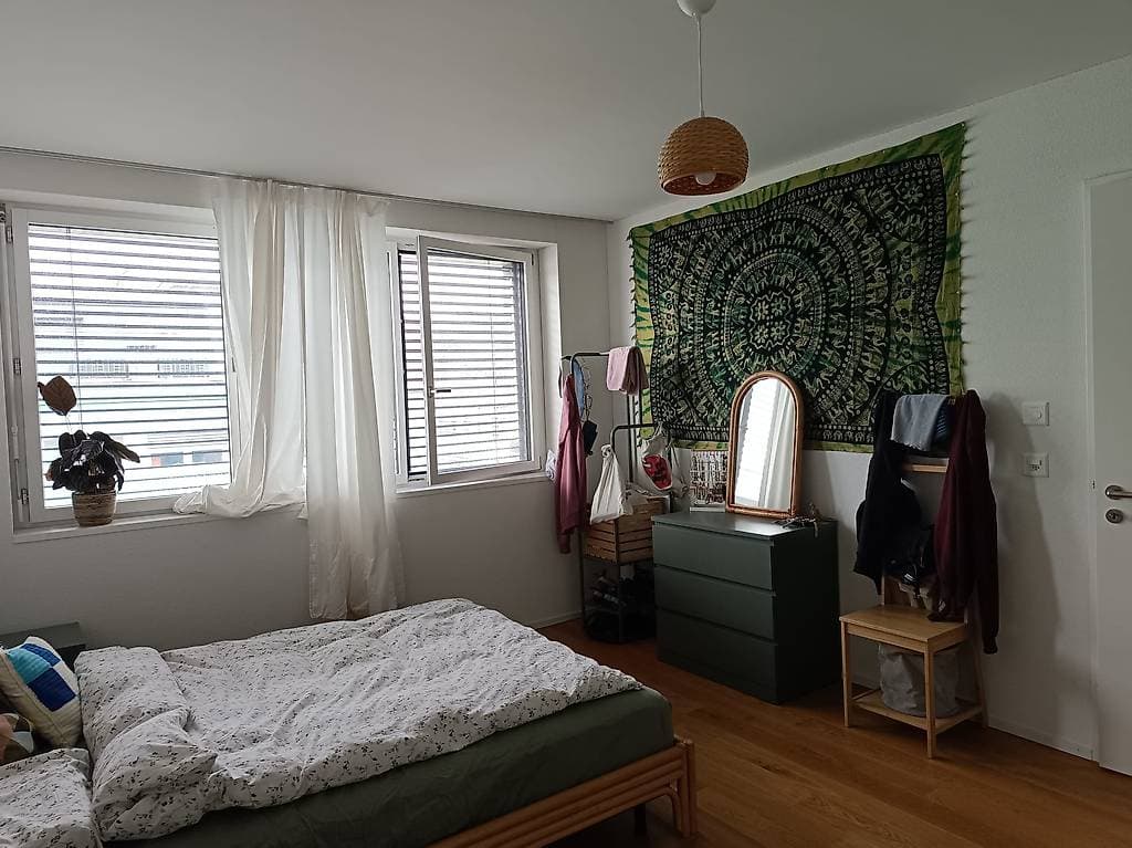 Ich bin für zwei Monate auf Reisen und suche jemanden, der mein grosses, vollständig möbliertes Zimmer in dieser Zeit mieten möchte.