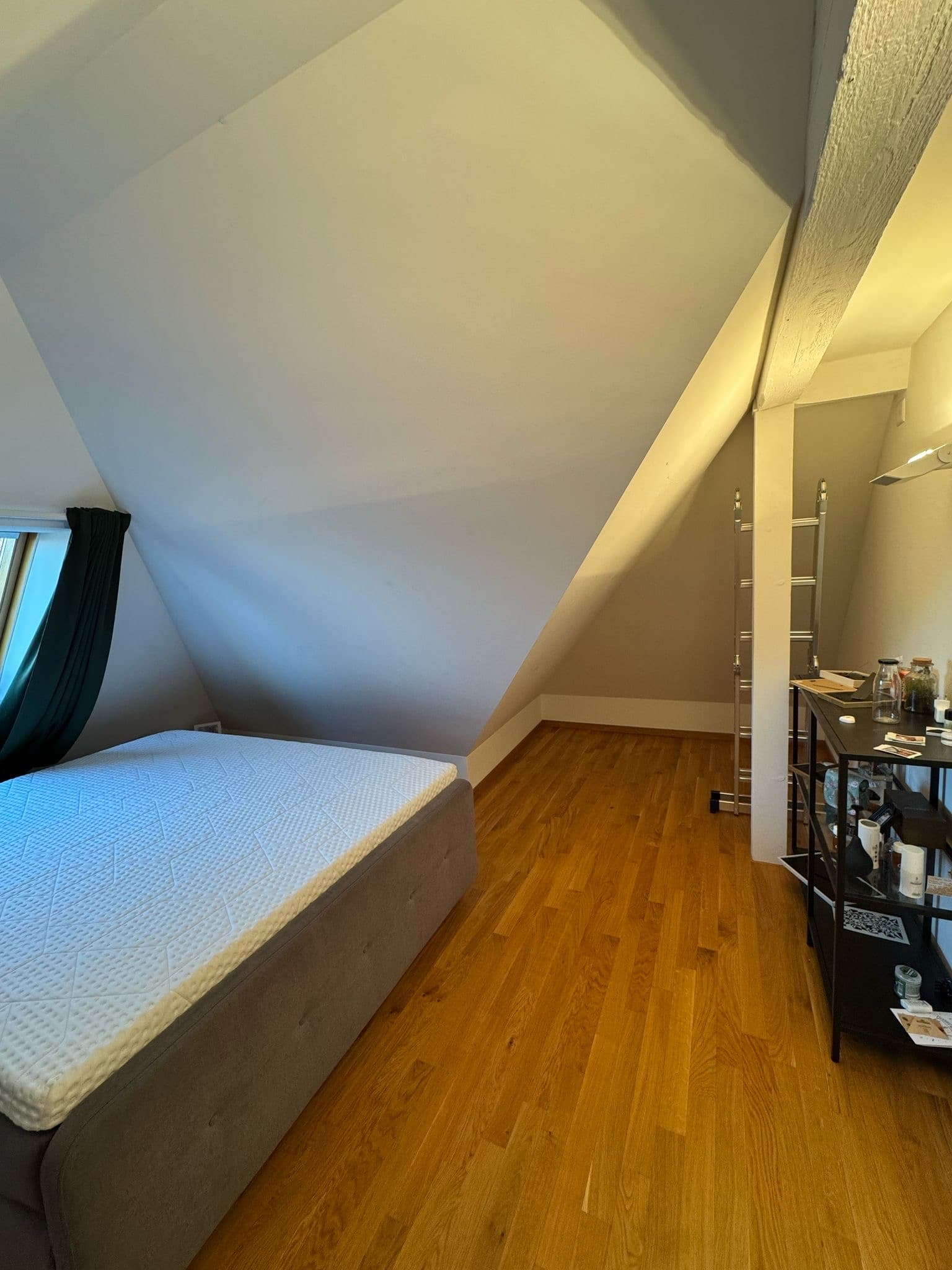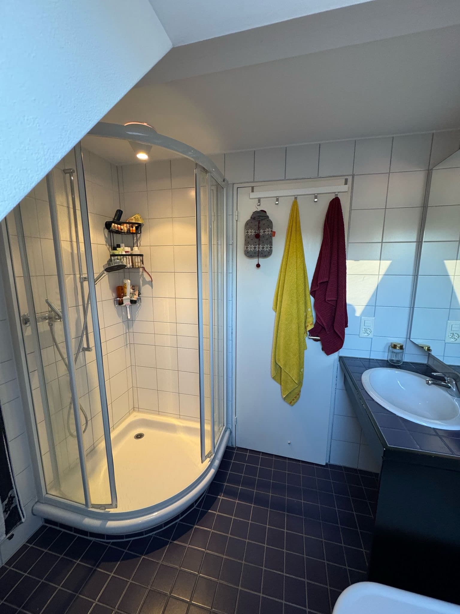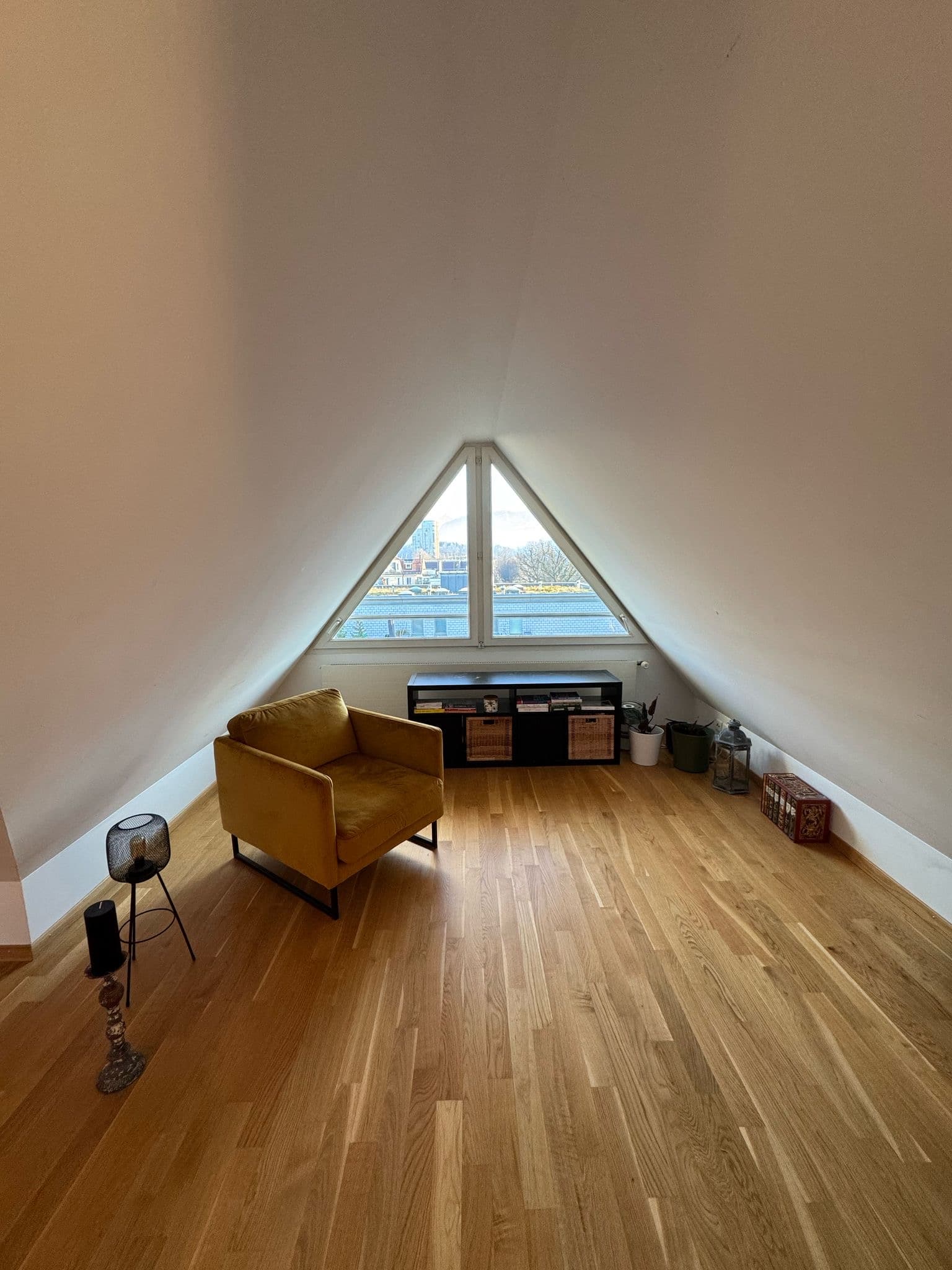 Dich erwartet eine 2,5-Zimmer-Wohnung im Dachgeschoss einer vierer WG.