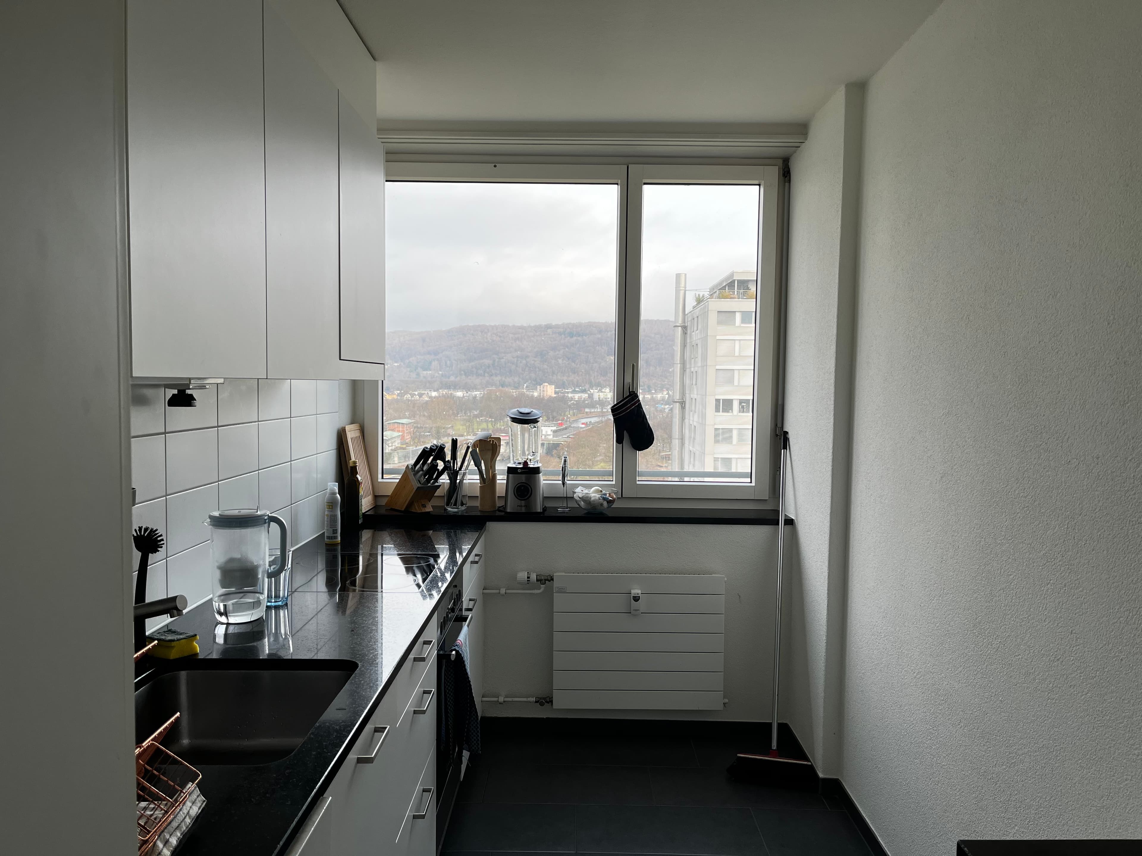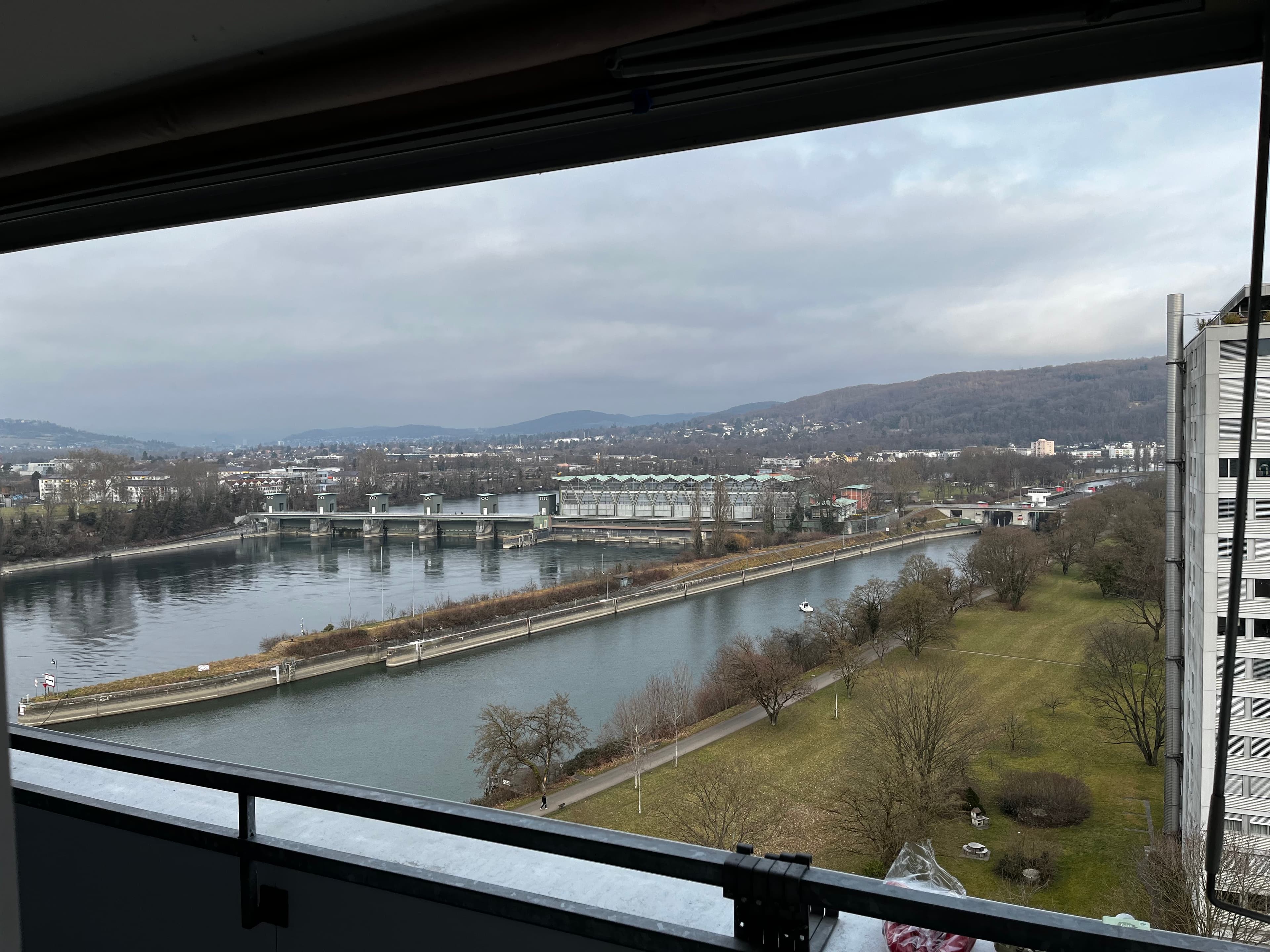 A bright, furnished room is available in our calm and friendly shared flat in 4127 Birsfelden (Basel-Land) – right next to Birsköpfli, one of the best summer hangout spots by the water. The room is about 20 m² and features a large window front, which makes it very bright. Since the apartment is on the 13th floor, you get lots of daylight and a truly amazing view. The windows face the sunrise, which is especially nice in summer: the room usually stays pleasantly cool because the afternoon sun doesn’t heat it up for hours. In winter it stays comfortably warm as well, since the flat is surrounded by other apartments. The room is furnished with a bed (basic/temporary mattress), a large wardrobe, plus desk and chair—perfect if you want an easy move-in.
