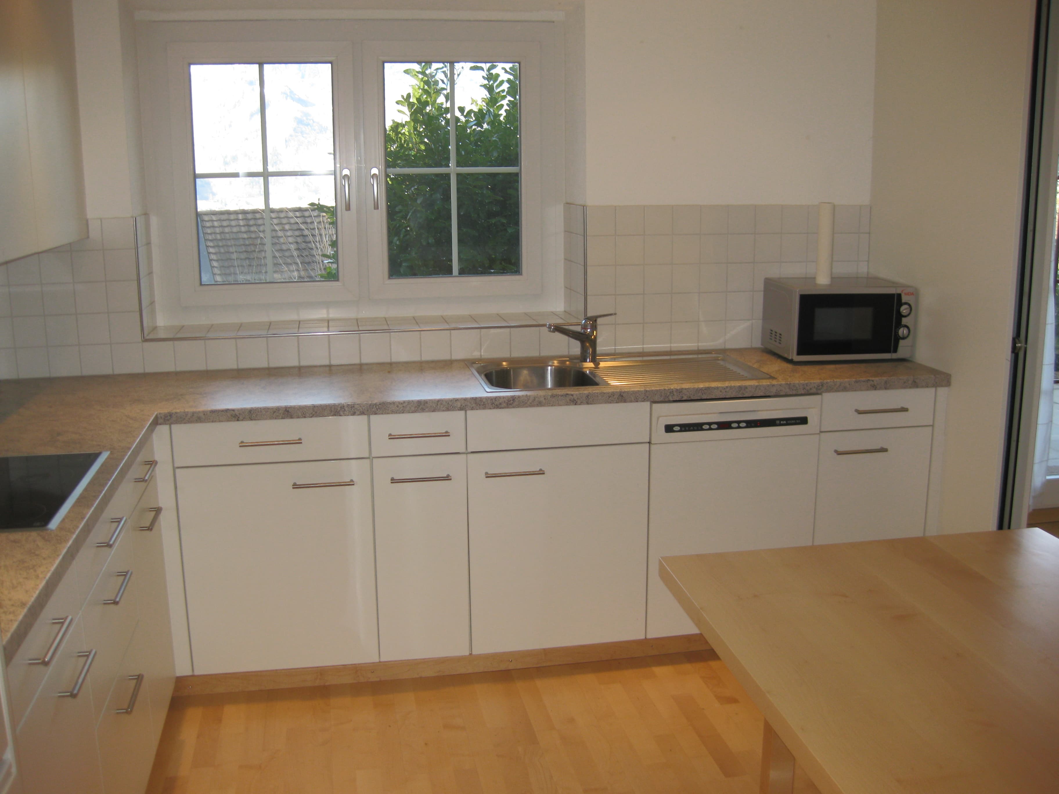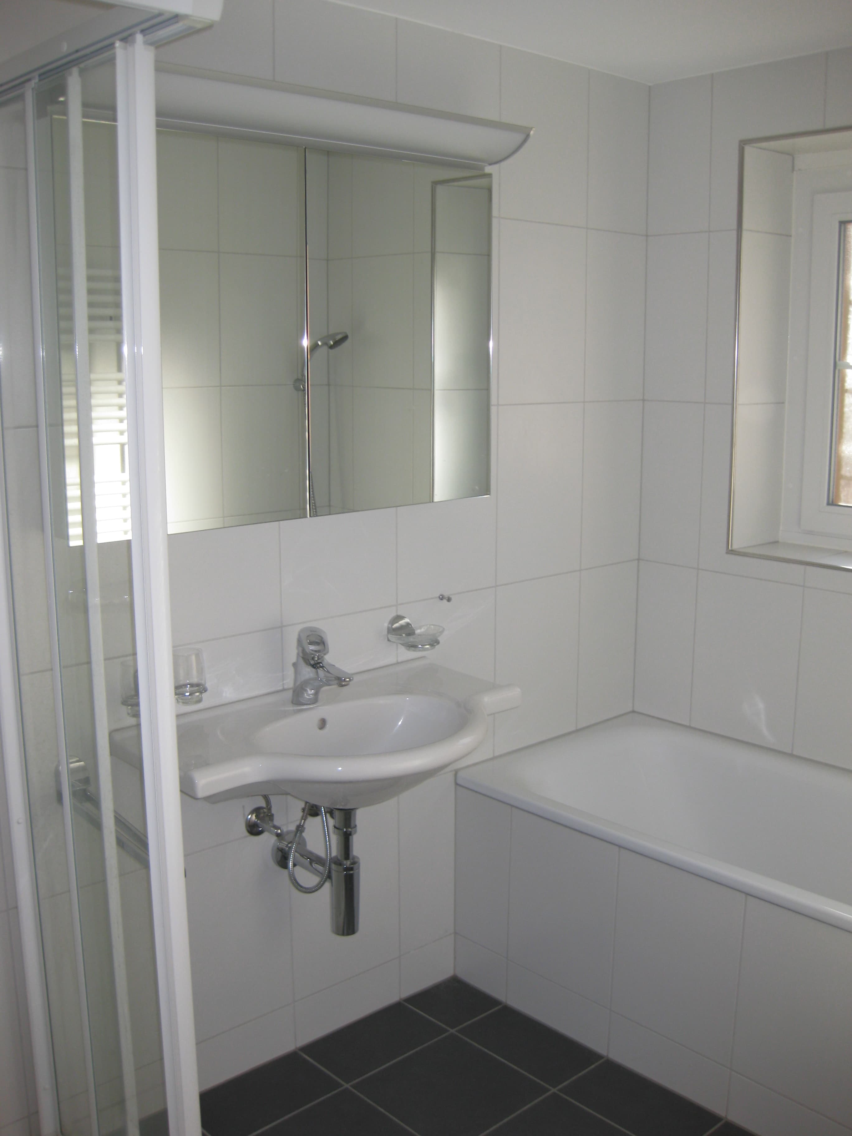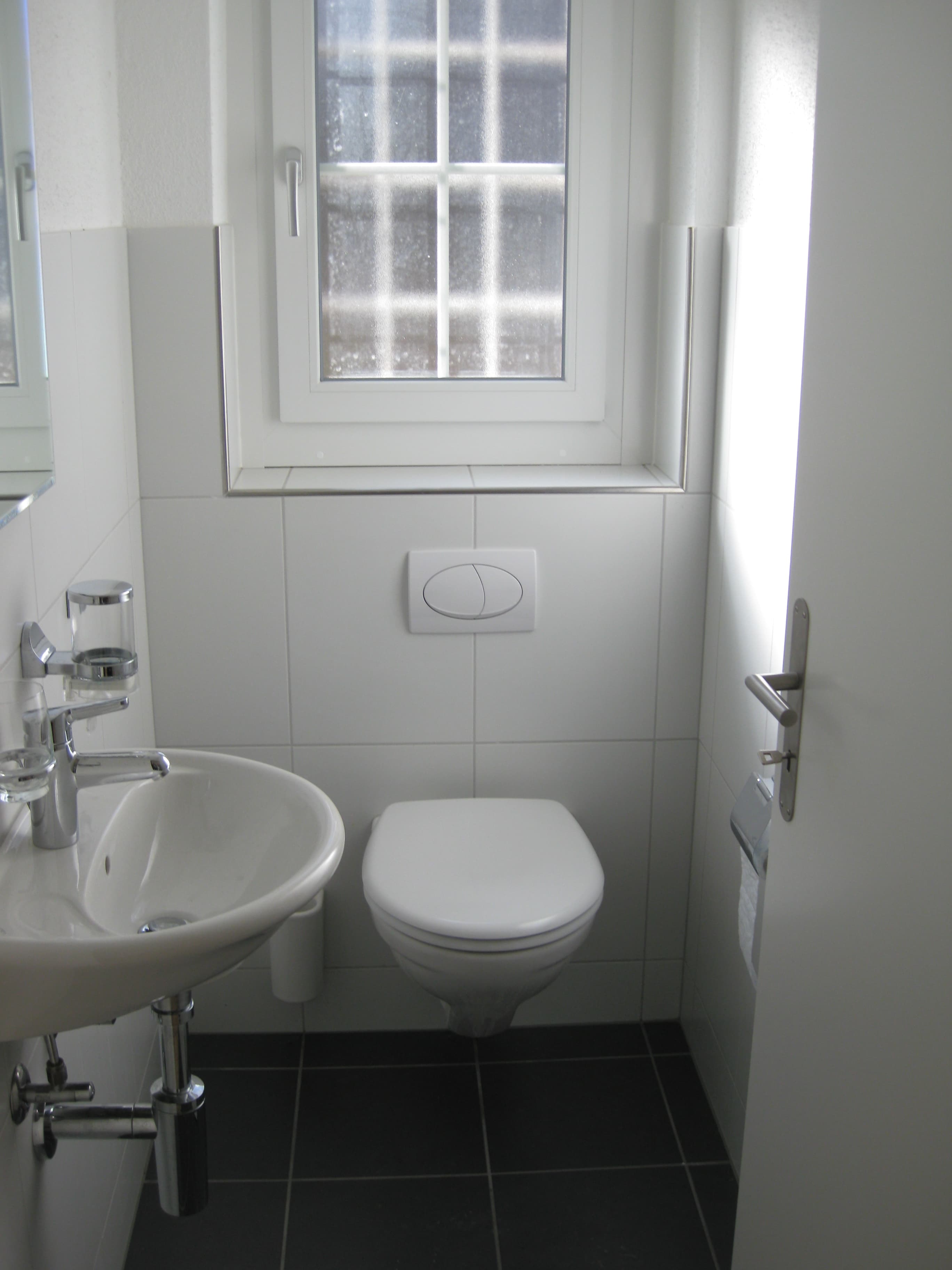 Die Wohnung hat eine Toilette, ein Badezimmer wie auch eine Küche mit einem kleinen Wohnzimmer. Ebenso hat es ein kleines Kellerabteil und die Waschküche ist fürs ganze Haus.