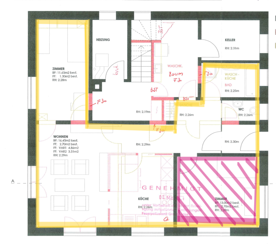 Das Zimmer (auf dem Plan rosa schraffiert) ist frei geworden.