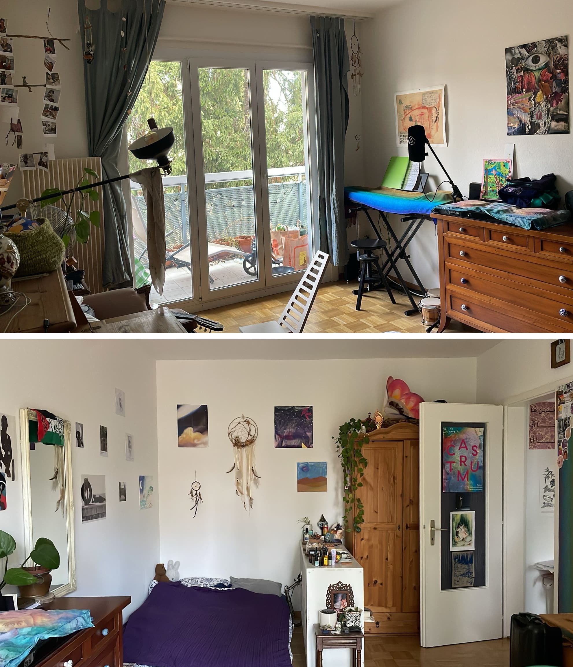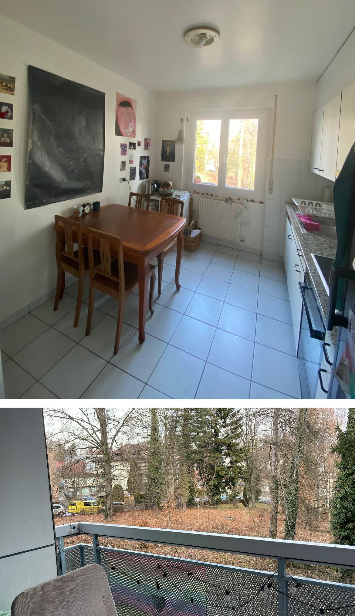 Das Zimmer ist 16.7m2 gross mit Zugang zu einem der zwei gemütlichen Balkone und Ausblick auf ein kleines Waldstück. Die Miete beträgt 480.-/Monat.