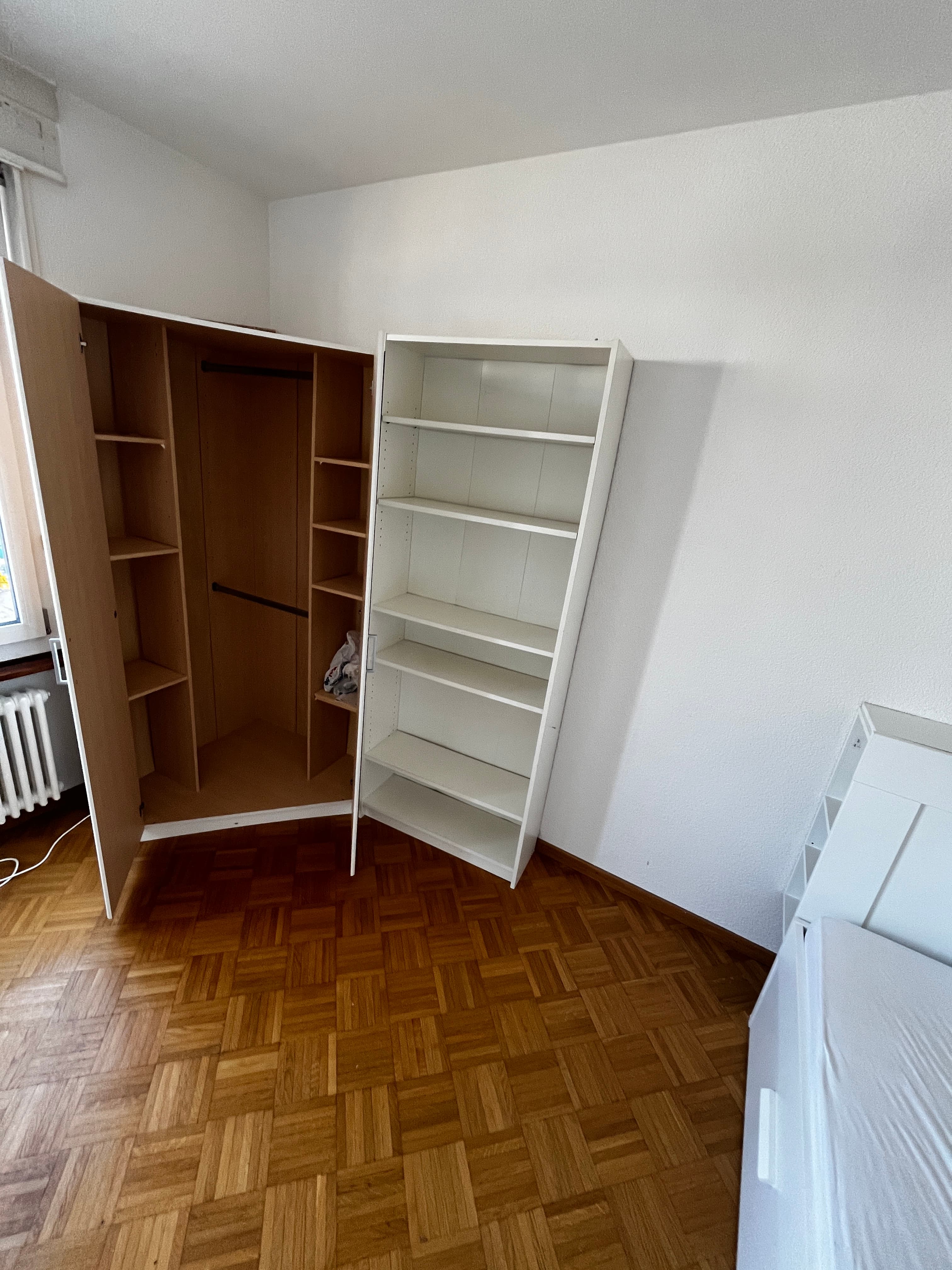 The room is bright and quiet (approx. 14 m²), with a beautiful parquet floor and a large window facing Rue de Locarno.