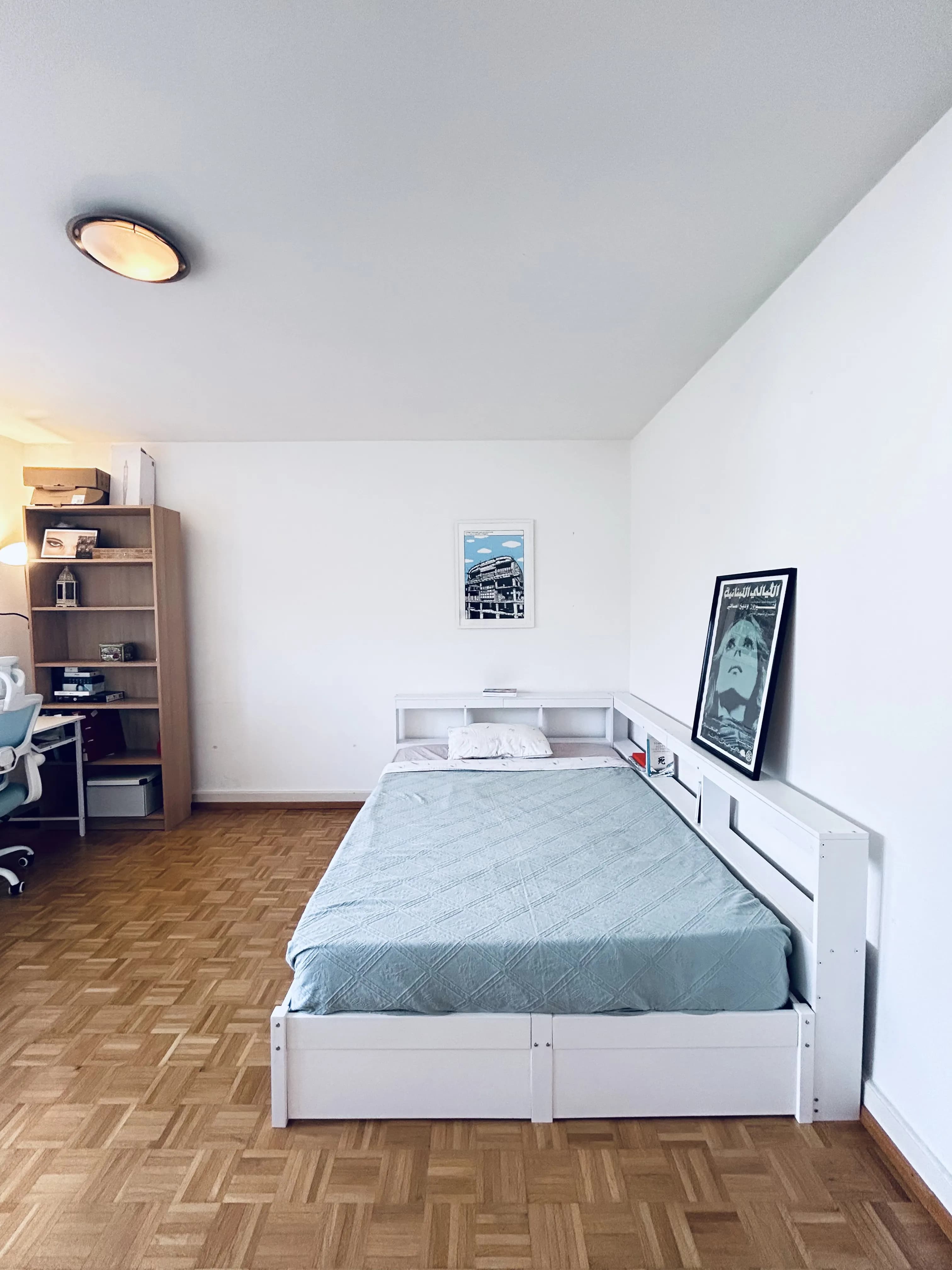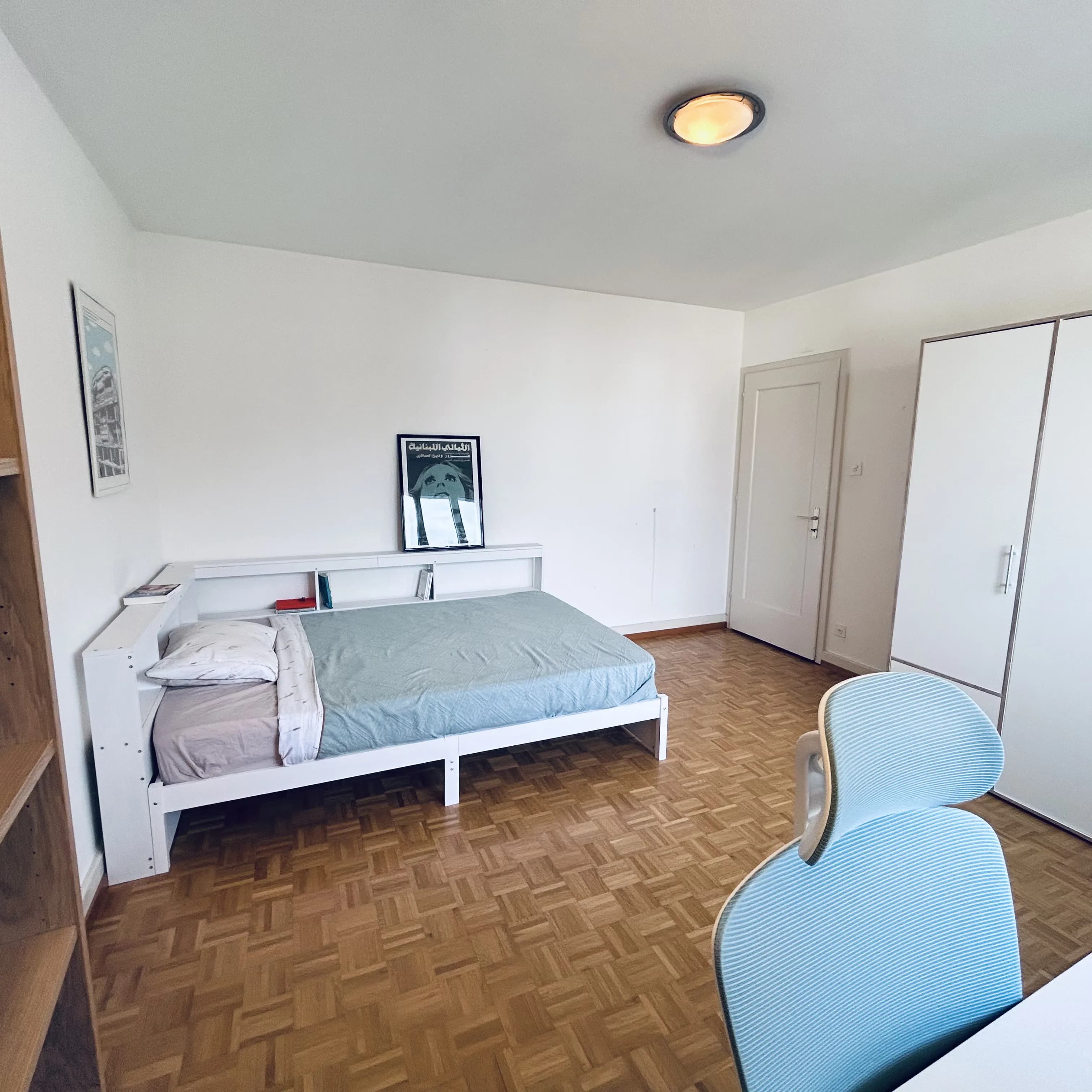 La chambre : Grande chambre ~20m2, calme et donnant sur la cour intérieure. Libre à partir du 1er mars (flexible)
