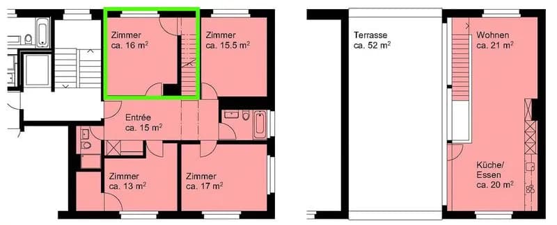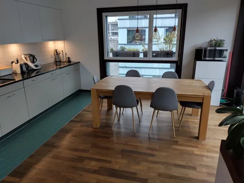Dein Zimmer ist gross (17m²), hell (2 Fenster), unmöbliert (mit Option bestehende Möbel zu übernehmen) und kostet Fr. 1244.-/Monat inkl. NK und Internet. Das Zimmer ist Teil einer grossen bereits möblierten 5.5 Zimmer-Wohnung mit 2 Badezimmern, einem eigenen Wäscheturm und einer grossen Dachterrasse. (41m² Küche und Wohnzimmer, 52m² Dachterrasse), ein Zimmer steht frei zur allgemeinen Nutzung. Unser derzeitiger Mitbewohner zieht aus, daher kannst du nach Absprache zwischen dem 01.01 - 31.03.2026 einziehen.
