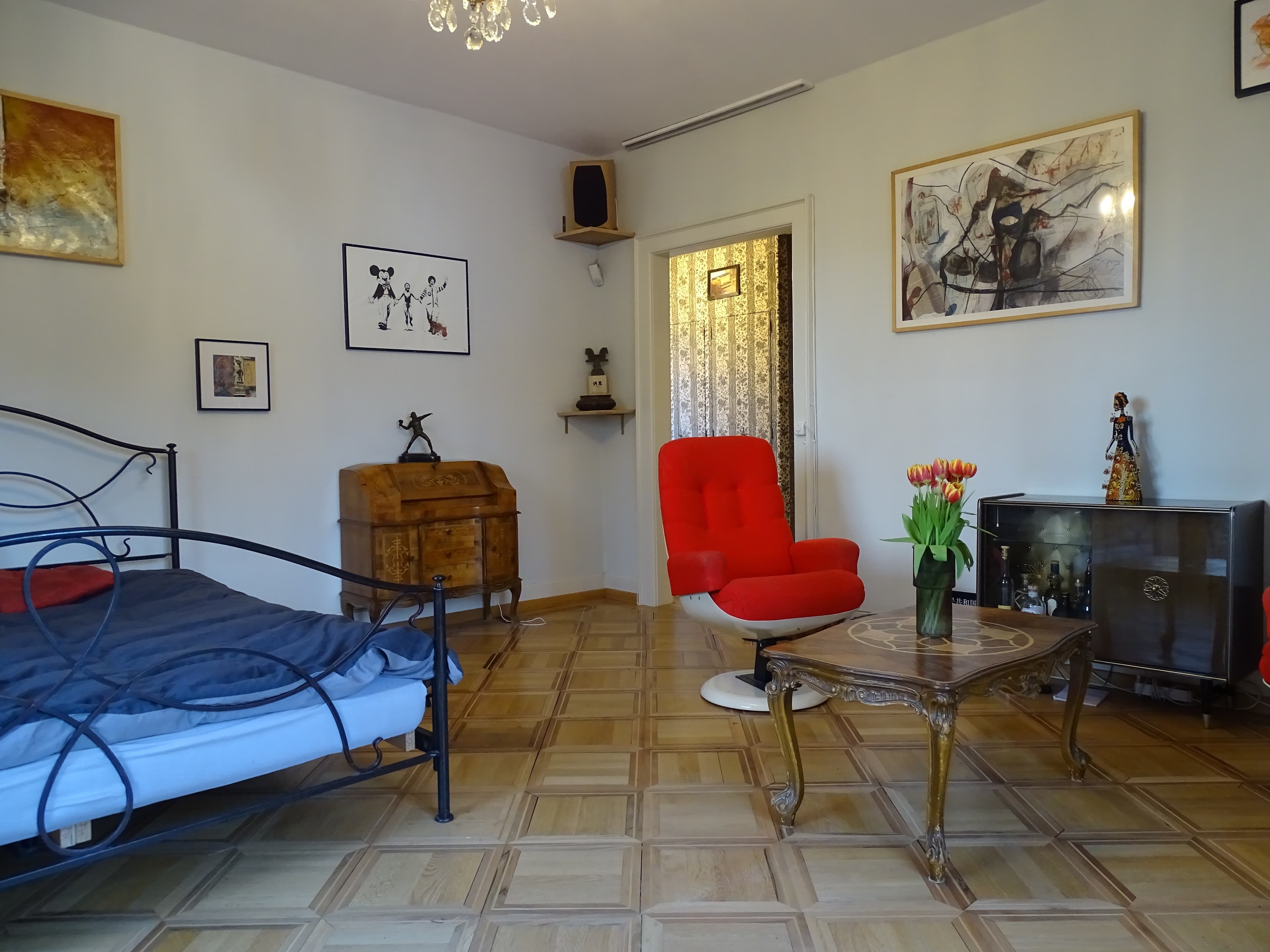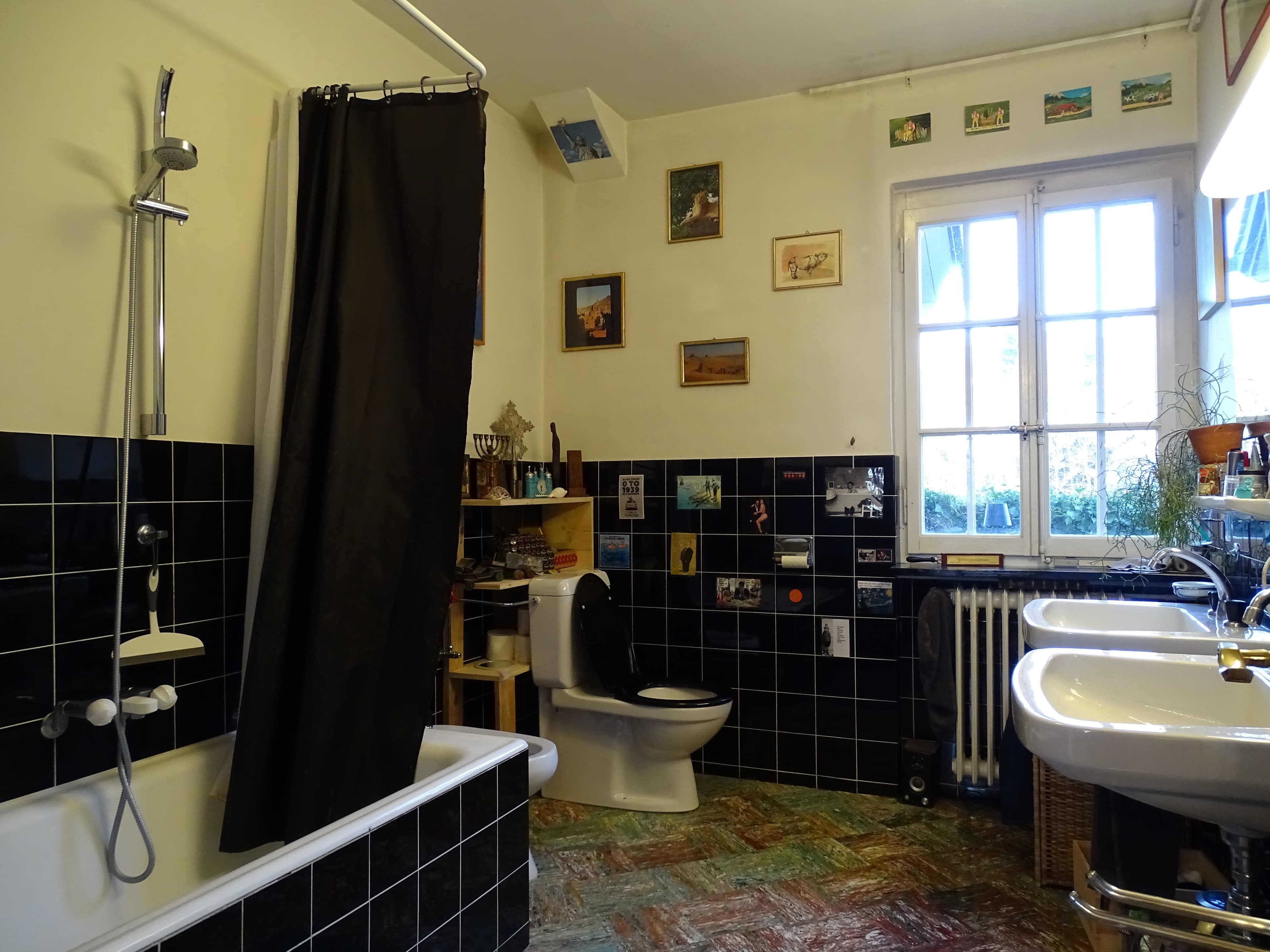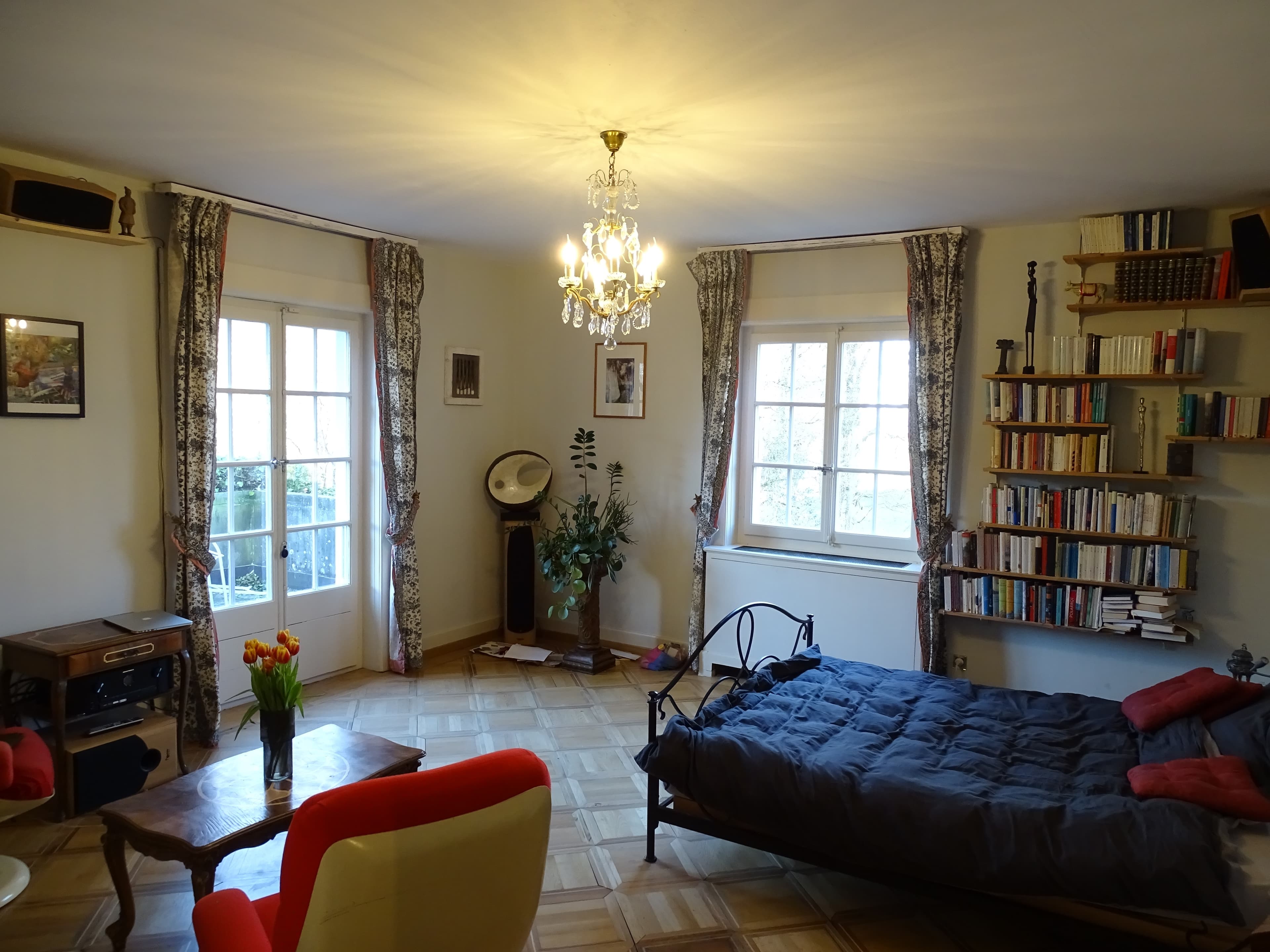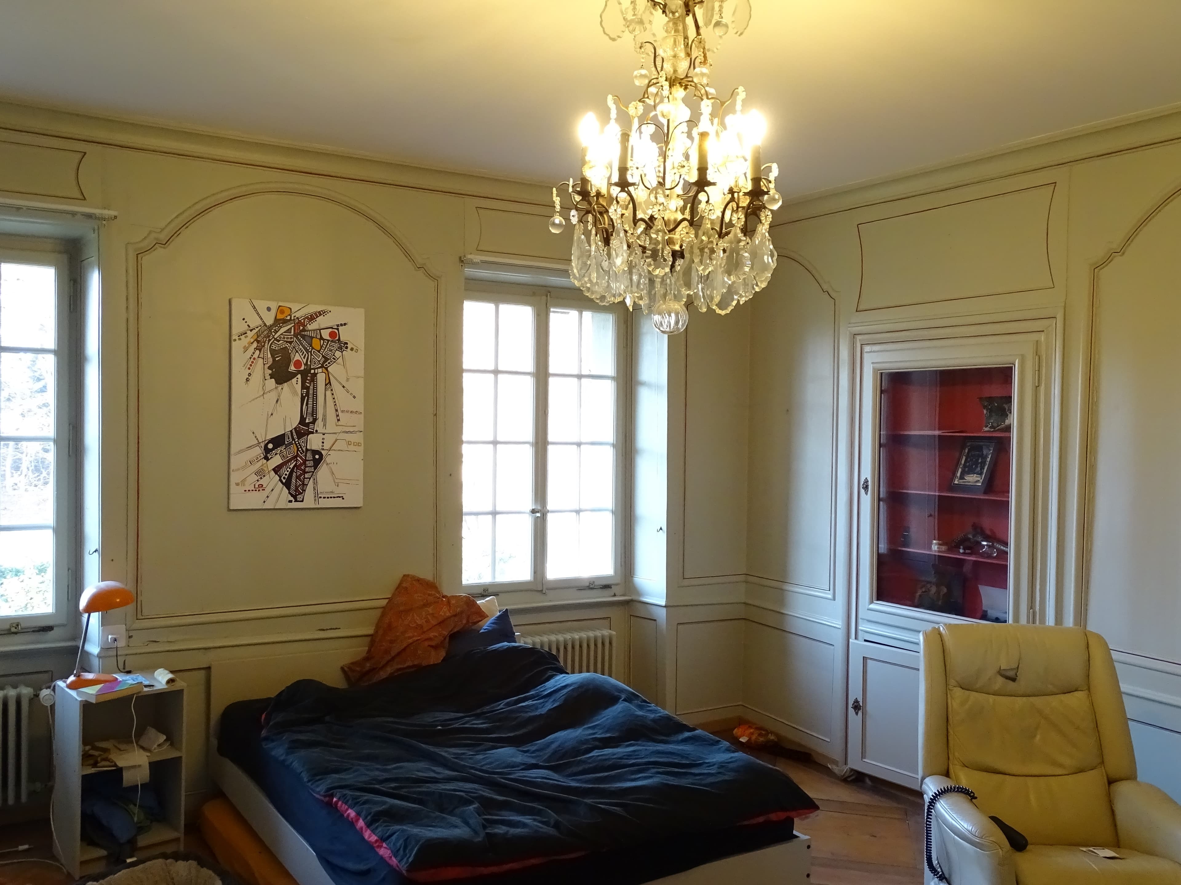 Das Zimmer ist gross und geräumig, verfügt über ein eigenes Bad mit Badewanne, zwei Lavabos und Toilette. Hell und Lichtdurchflutet mit einem eigenen Balkon und Ankleidezimmer mit vielen Einbauschränken. Es besteht die Möglichkeit für 300.- ein zusätzliches Zimmer (ohne Bad), das gleich nebenan liegt mitzumieten (ideal als Kinderzimmer oder Atelier...). Wir haben als allgemeine Räume neben der grossen Küche zwei Wohnzimmer, eine Bibliothek, einen 8000m2 Park mit französischem Garten und Pool und zwei schnuckeligen kleinen Häuschen für private Feste und Freunde die zu besuch kommen. Eine Bühne und eine Bar stehen natürlich auch immer für dich da.