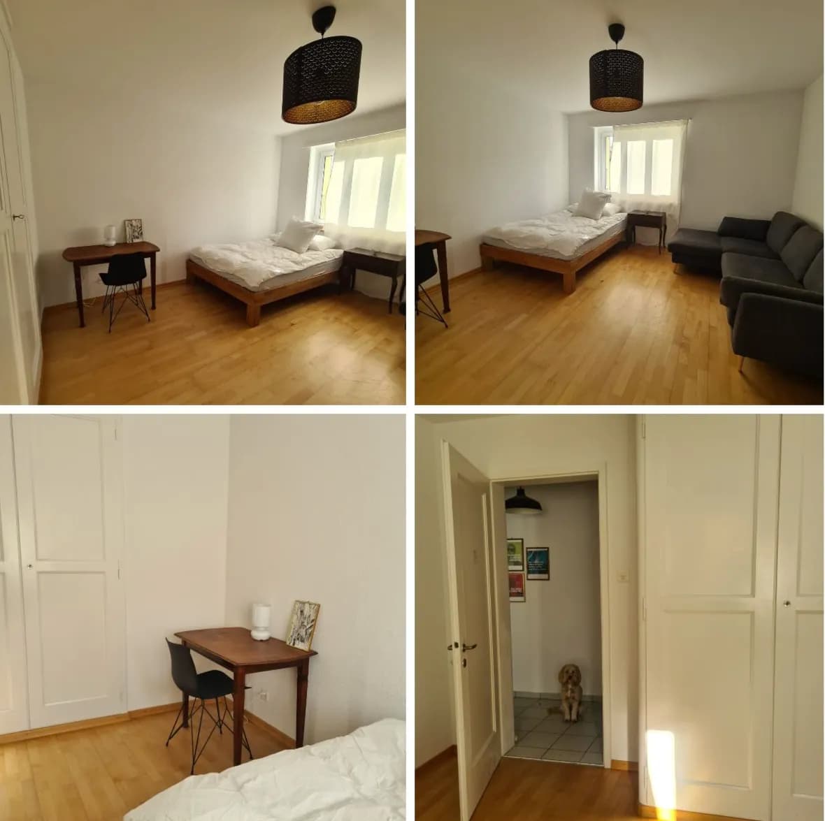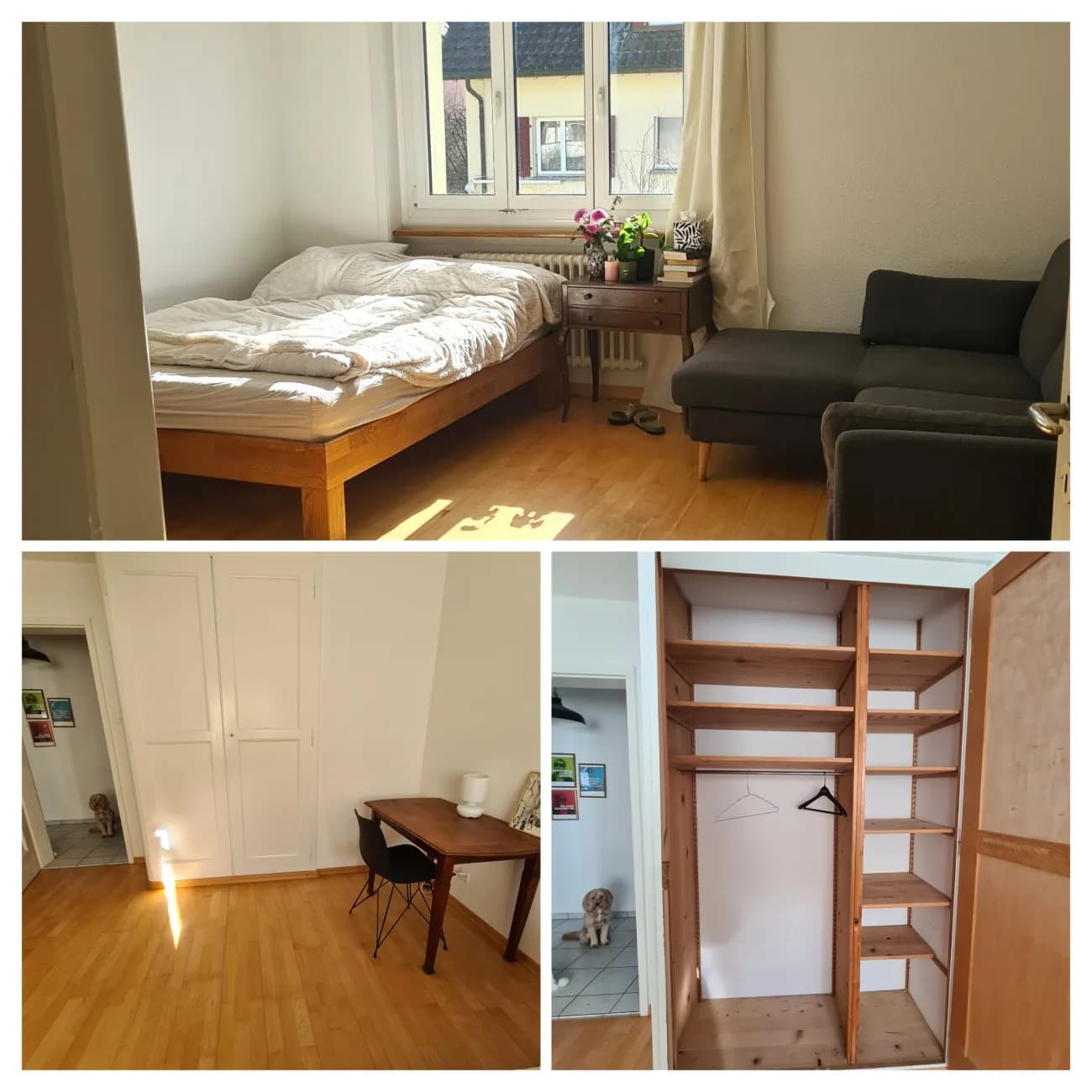 Liebe alle, ich vermiete ein ca. 16m² grosses Zimmer in einer 4.5-Zimmer-Wohnung in Köniz mit sehr guter ÖV-Anbindung (in 10 Min am Bahnhof Bern) für eine tolle, aufgeschlossene, unkomplizierte und tierliebe Person:)