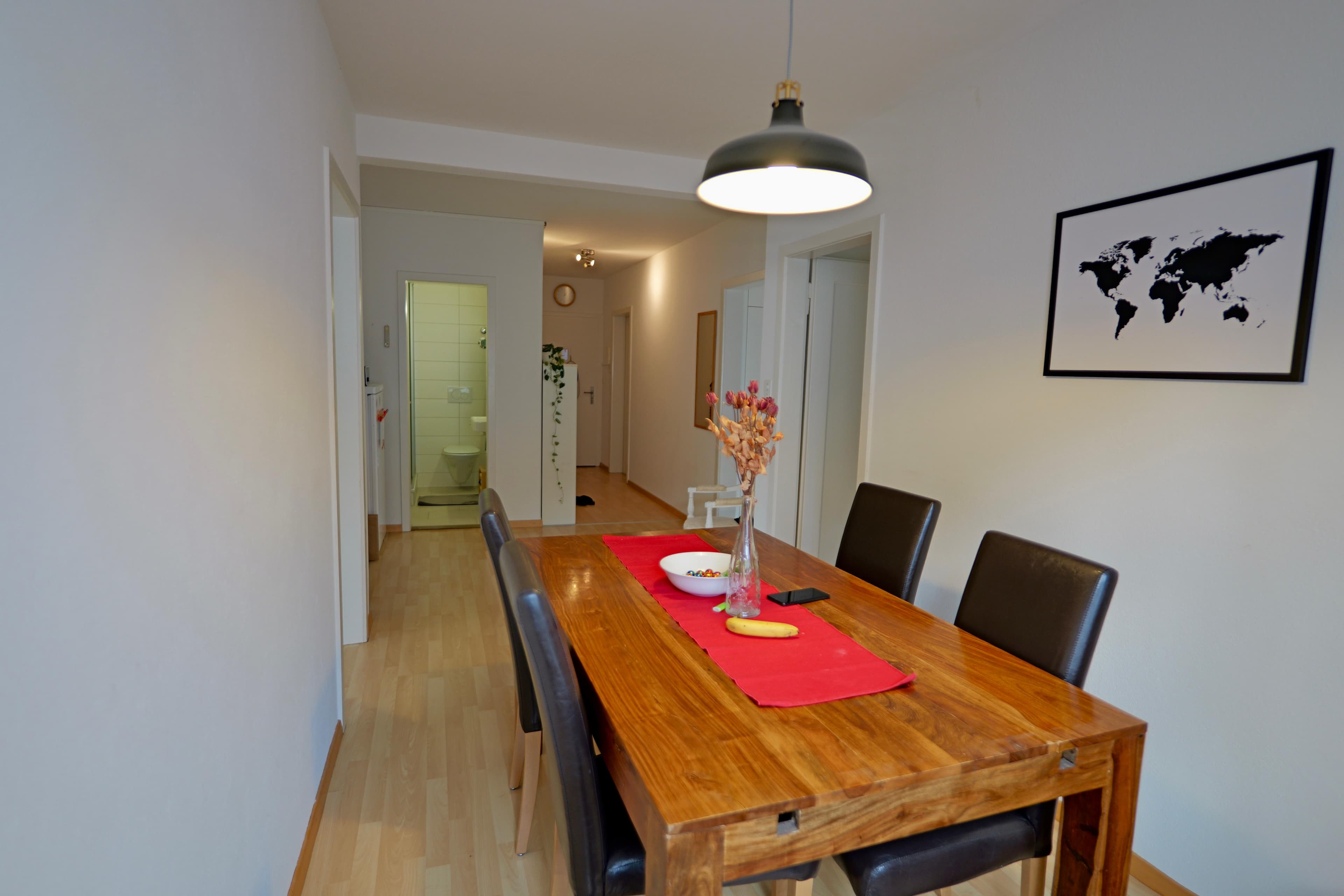 Unsere 95 m² grosse und moderne Wohnung liegt direkt im Zentrum von Köniz. Die Wohnung bietet eine schöne, gut ausgestattete Küche, ein modernes Bad sowie ein gemütliches Wohnzimmer mit grossem TV und bald auch neuem bequemen Sofa.