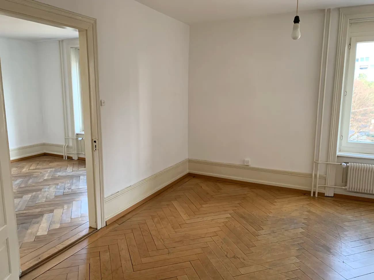 Die schöne Altbauwohnung mit Fischgrätparkett liegt an ruhiger und zentraler Lage beim Lochergut. 810.00 CHF/pro Monat für Beide Zimmer zusammen, alles inkl.