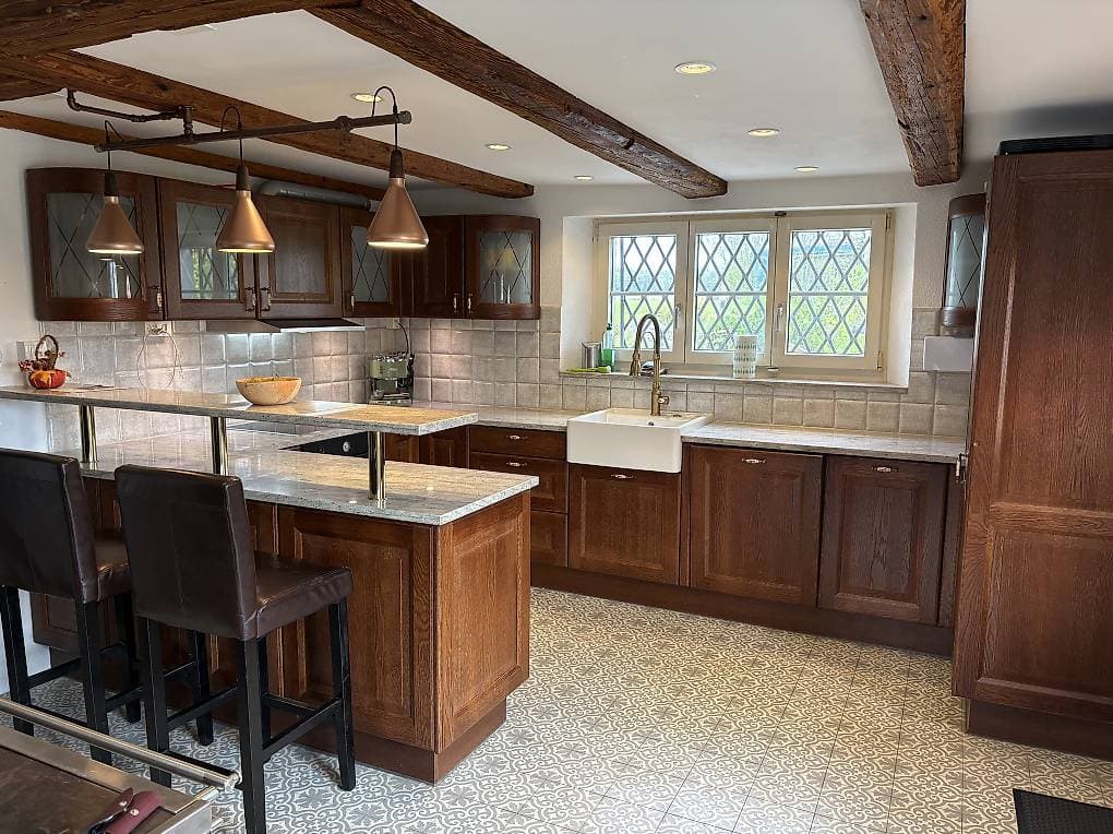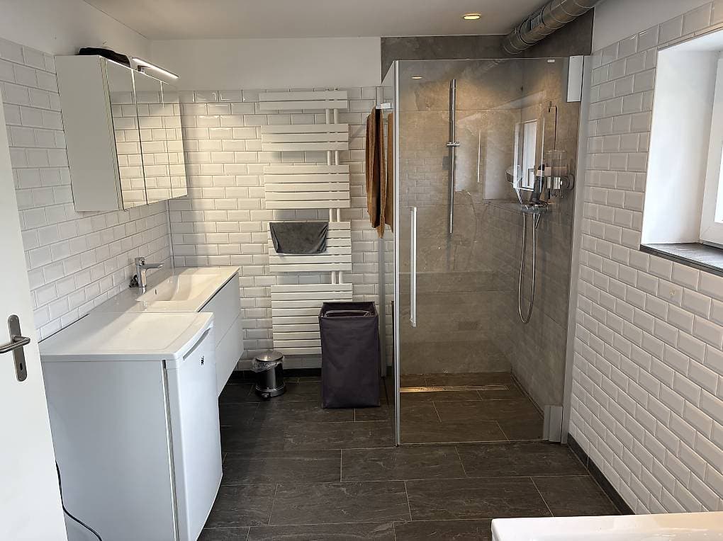 Dein Zimmer befindet sich in einem Frisch Sanierten Bauernhaus mit Baujahr 1820 und ist 16m2 gross. Es sind 2 Zimmer in der selben Grösse verfügbar. Das eine ist ein Eckzimmer sehr hell mit 3 Fenster. Das andere hat 1 Fenster. Es besteht die Option möbliert oder unmöbliert. Die Zimmer befinden sich im 1. Stock mit einem WC und Büro auf der Etage. Zur Mitbenutzung im EG ein sehr grosses Badezimmer mit Whirlpool und Dusche, eine grosse Küche mit Bar, Wohnzimmer mit TV. Im Aussenbereich eine Terrasse/Sitzpaltz mit Chemine und Grill für die Sonnigen Tage. Inkl. regelmässige Reinigung, High Speed Glasfaser WiFi, TV mit Amazon Prime. Das Haus liegt am Dorfrand von Hochfelden mit viel Grün gleich hinter dem Haus. Parkplätze sind vorhanden und im Preis inbegriffen. Inkl. Lademöglichkeit für EV. Bushaltestelle nach Bülach 2 min Fussweg. Ab Bülach Bahnhof erreichst du die City oder Flughafen in kürzester Zeit. Autobahn und Einkaufsmöglichkeiten in Bülach.