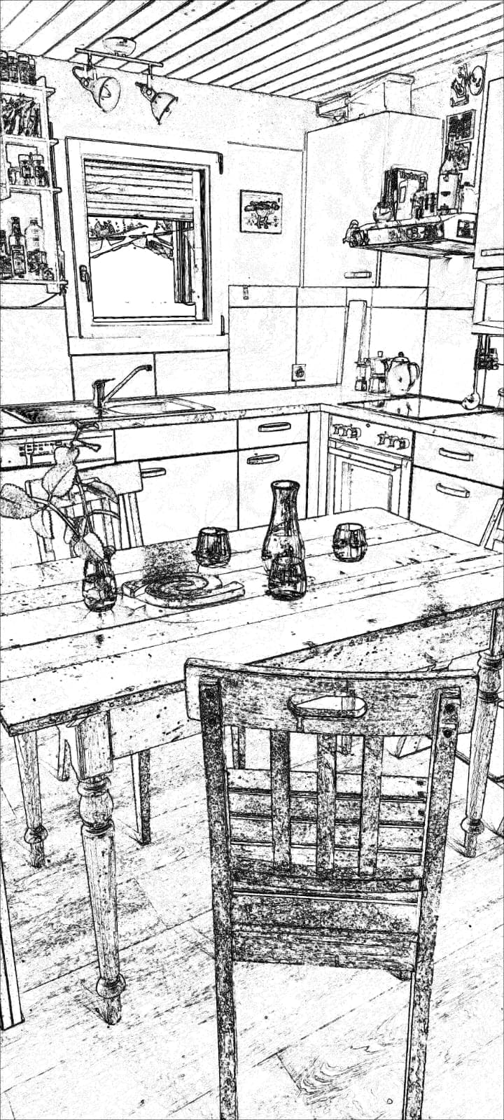 Der Wohn- und Essbereich ist 30 m2 und befindet sich im unterem Stock.