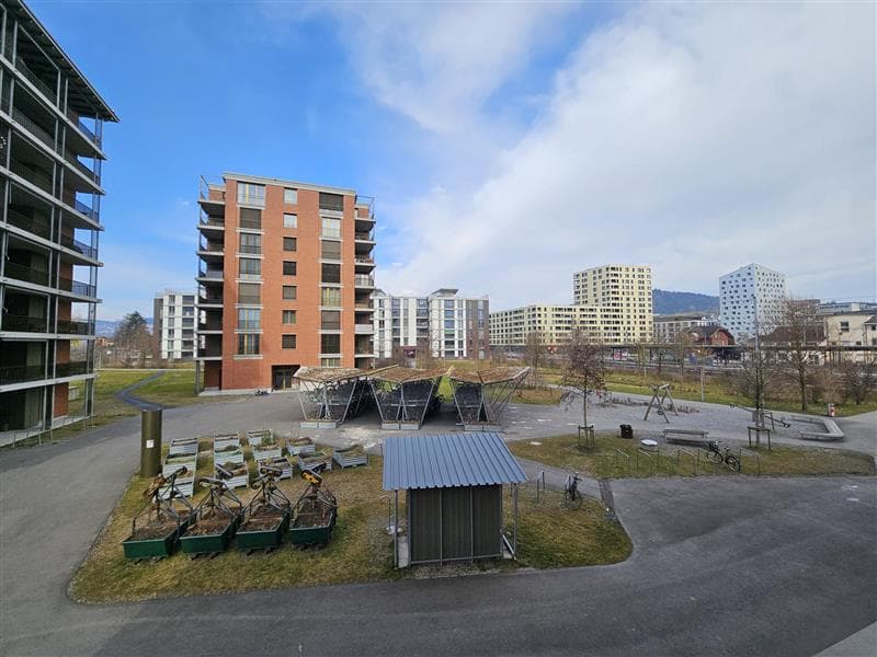 Die Wohnung hat einen grossen Balkon mit unverbauter Grünfläche und Blick auf den Pilatus. Weiter steht im trockenen Keller Platz zur Aufbewahrung zur Verfügung. Im Innenhof gibt es Sitzgelegenheiten, eine Feuerstelle, einen Spielplatz, Hochbeete und einen gedeckten Veloabstellplatz. Für deine Gäste hat es 10 Besucherparkplätze.