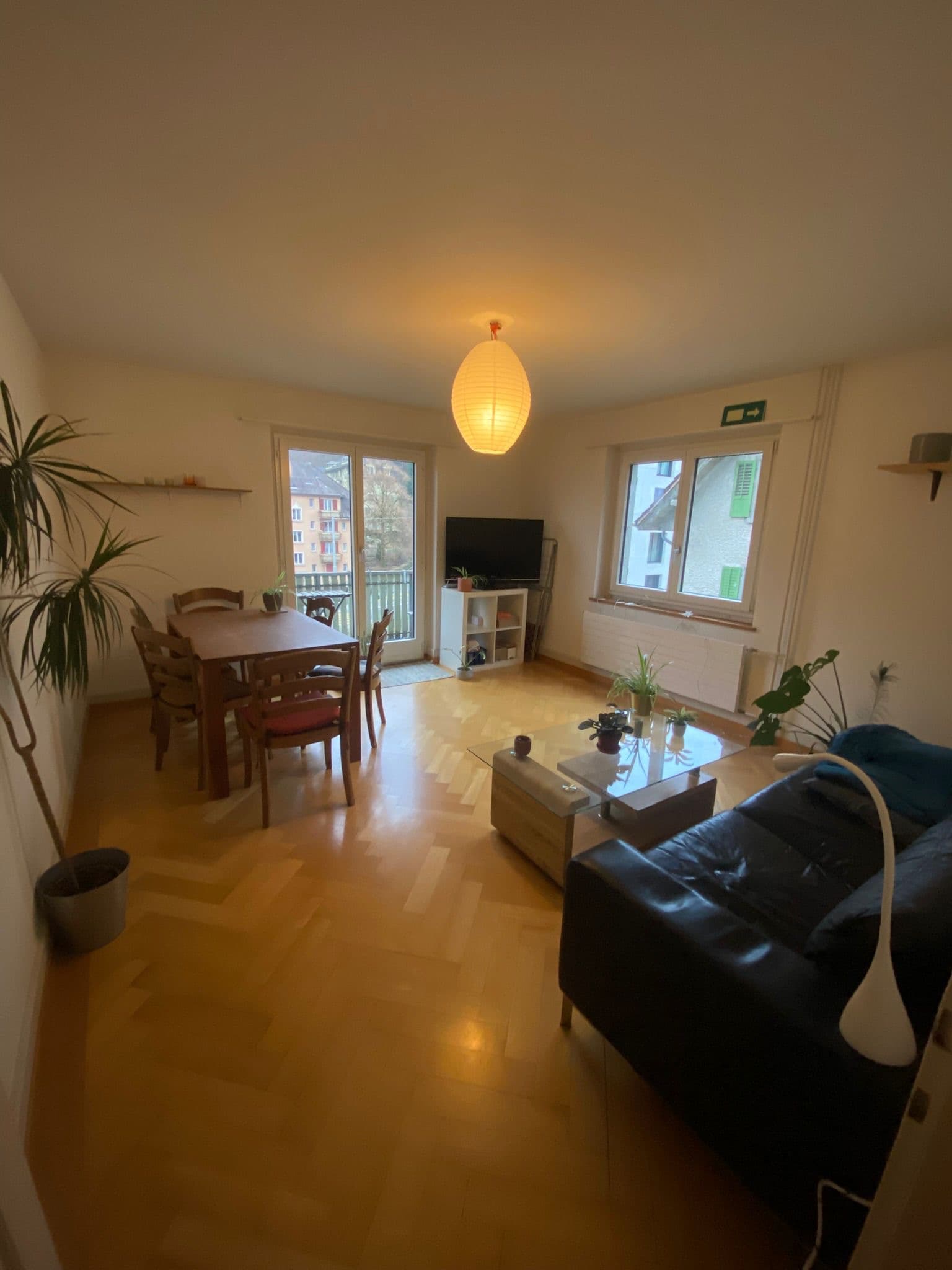 Die Wohnung verfügt u.a über einen kleinen Balkon, Küche mit Essbereich, ein Bad mit Badewanne (inkl. Dusche), Wohnzimmer, eine Waschmaschine, ein geräumiger Estrich und ein Velokeller vorhanden. Der Mietkostenanteil pro Person beträgt CHF 554.