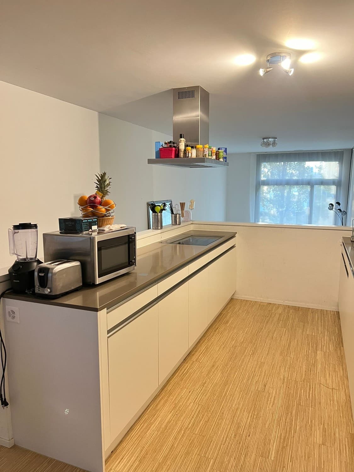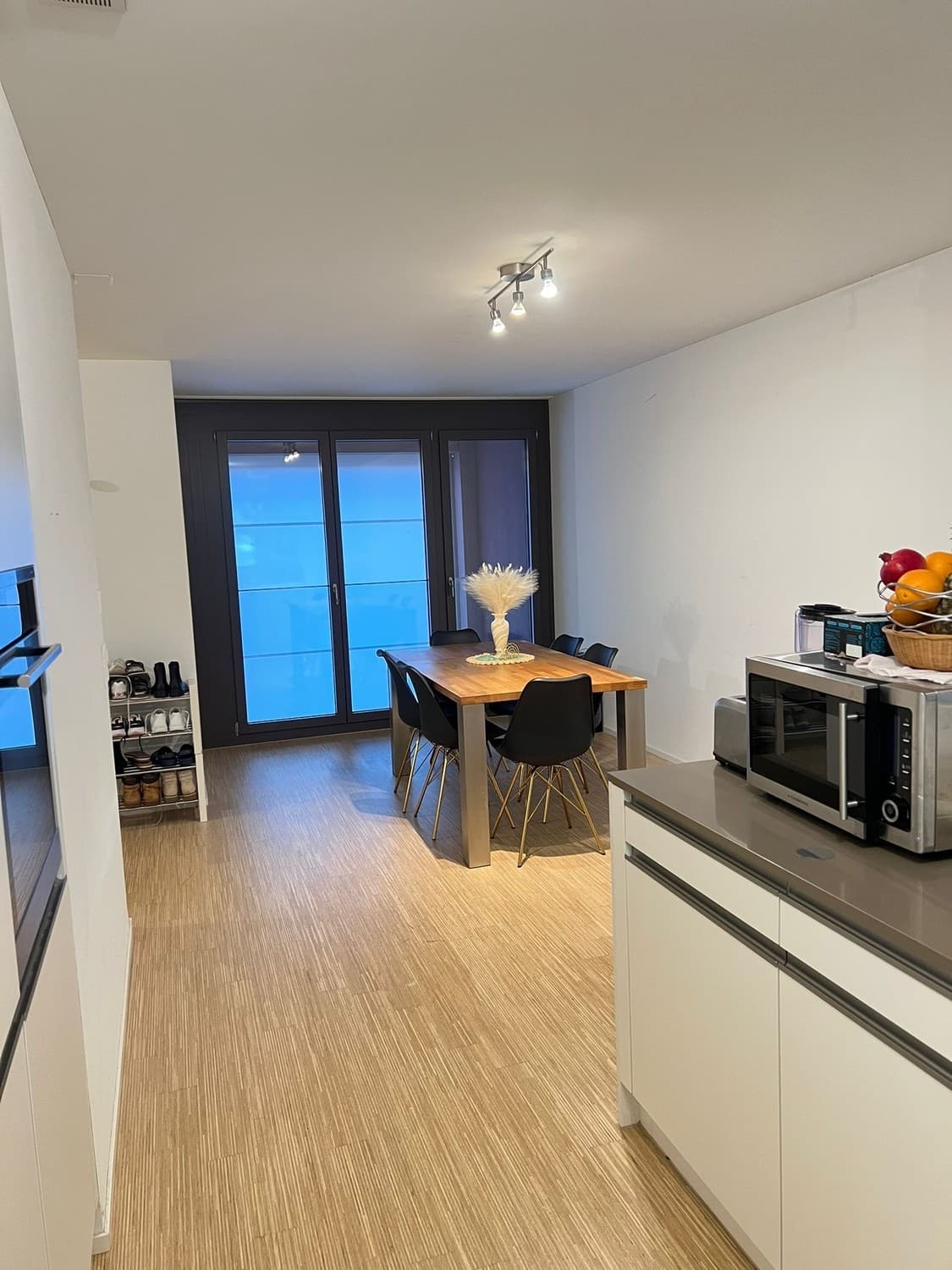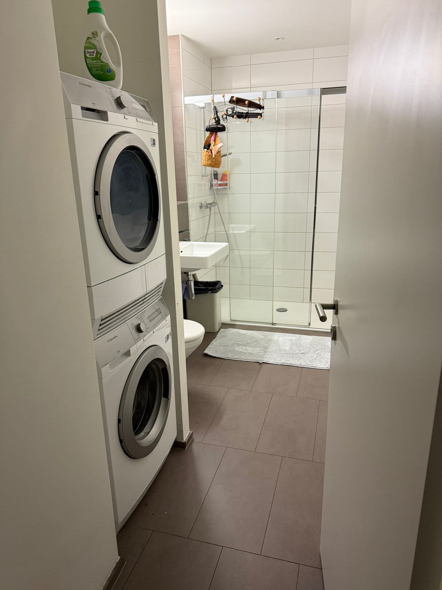 Waschen & Haushalt: Eigene Waschmaschine und Tumbler in der Wohnung. Unser Saug- und Wischroboter „Roborock Qrevo Master“ reinigt täglich den Küchenbereich