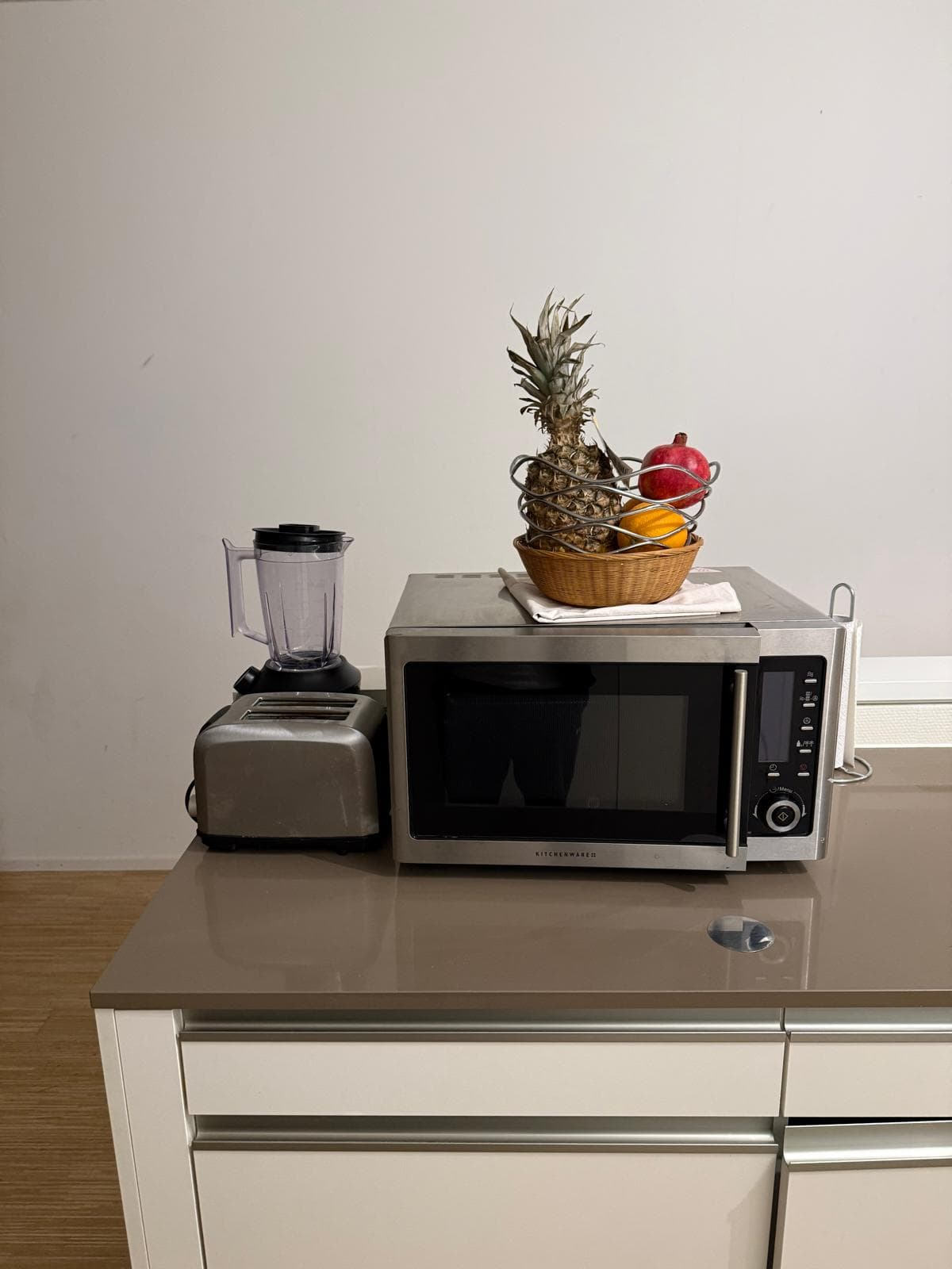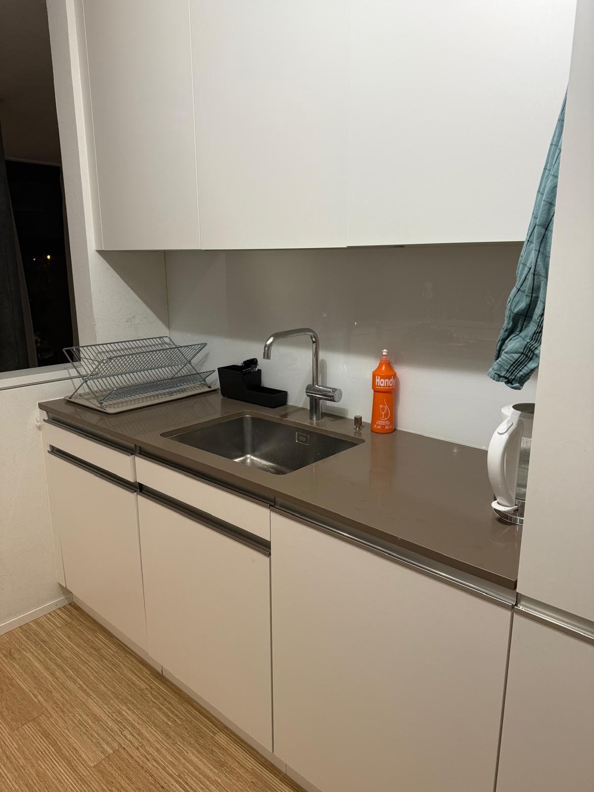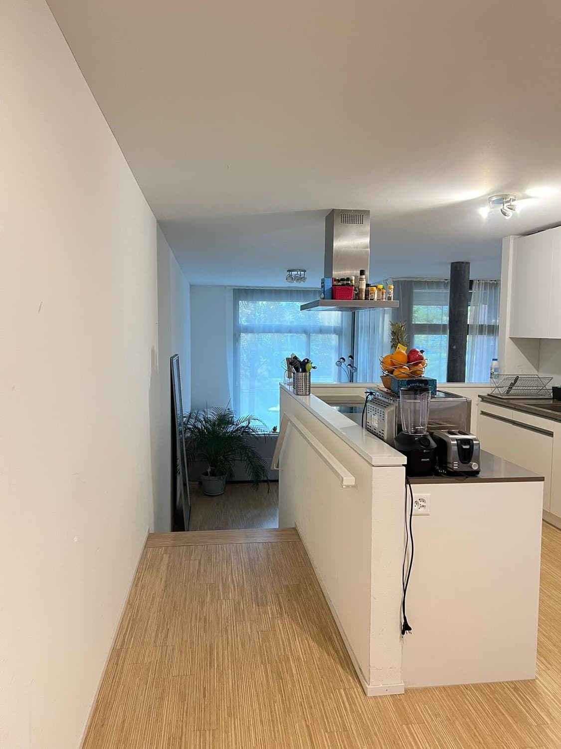 Waschen & Haushalt: Eigene Waschmaschine und Tumbler in der Wohnung. Unser Saug- und Wischroboter „Roborock Qrevo Master“ reinigt täglich den Küchenbereich