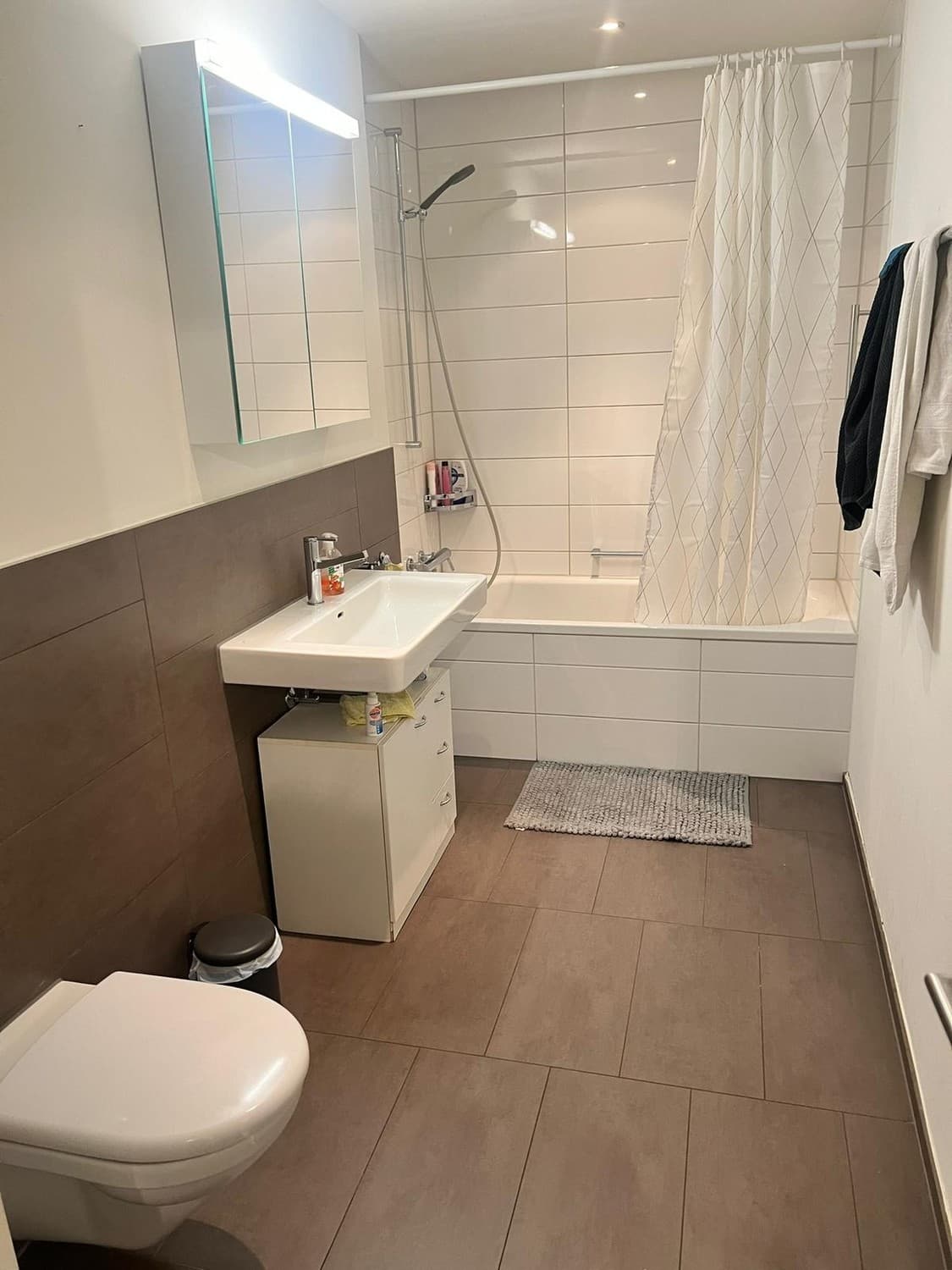 Badezimmer: Du teilst dir ein Bad mit Dusche mit deiner Zimmernachbarin (25/w). Zusätzlich gibt es ein zweites Bad mit Badewanne.